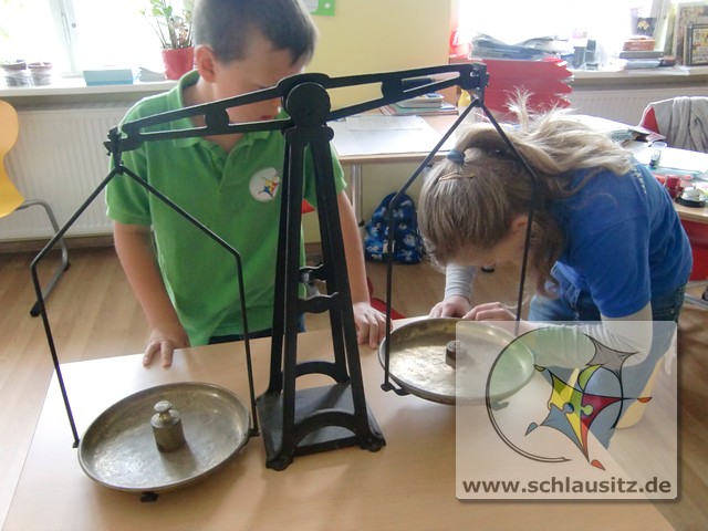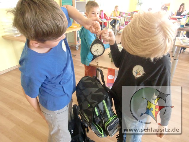 Jeder hat die verschiedenen Arten ausprobiert und Schulbücher, Hefte und die verschiedenen Schreibgeräte gewogen. Mit der Kofferwaage wurden sogar die Schultaschen und Rucksäcke gewogen. Vielleicht helfen die Schüler ja auch zu Hause beim Kochen oder Backen und können so das erlernte Wissen auch gleich praktisch anwenden.