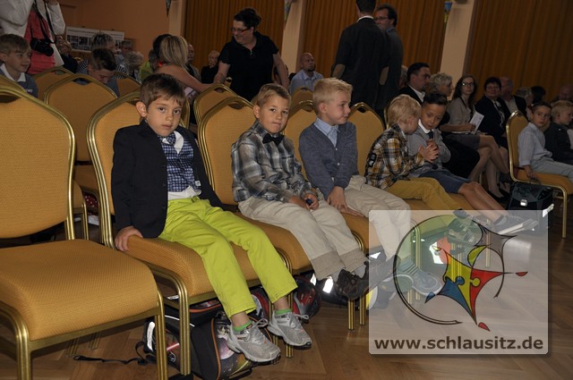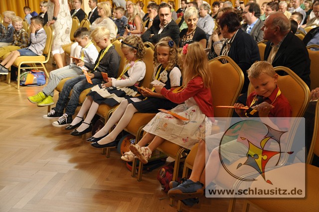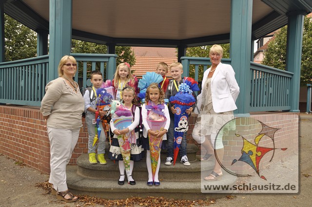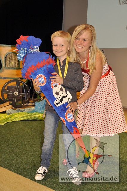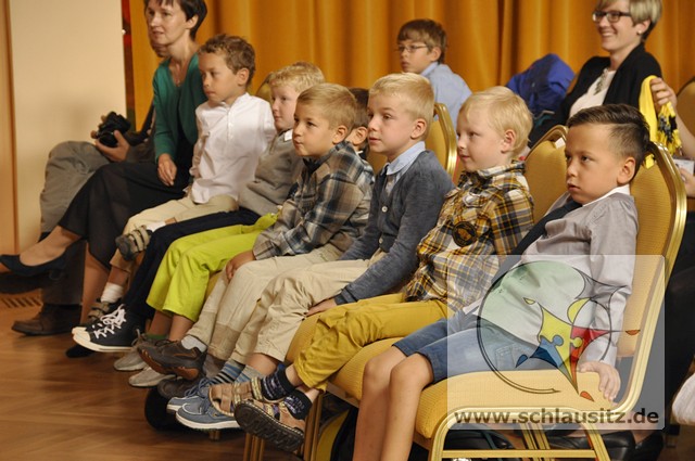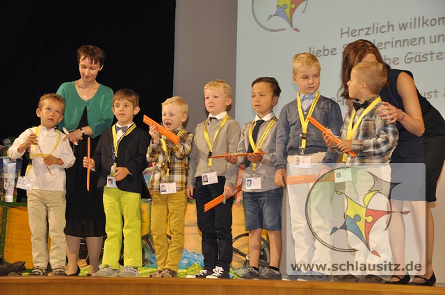 Feierliche Übergabe des Schülerausweises der Georg Heinsius von Mayenburg-GrundschuleDie Schlausitz-Zuckertütenkutsche kam auch dieses Jahr wieder pünktlich zur Einschulung nach Brieske. Denn in unserer Grundschule warteten Mädchen und Jungs gespannt auf ihre feierliche Schulaufnahme und natürlich auch auf die begehrten Geschenke. Doch bevor die Zuckertüten übergeben wurden begrüßte die Schulleiterin Frau Eckhardt die Schulanfänger, Eltern und Gäste mit herzlichen Worten.