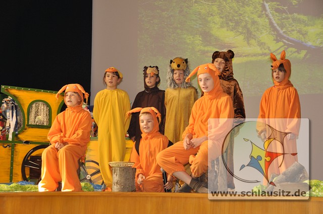 Die Schüler unserer Grundschule zeigten den neuen Erstklässlern was sie ab Montag so alles erwartet. In dem Musical über das kleine Eichhörnchen Neo und seinem ersten Schultag erfuhren die Kinder, dass bei uns sehr viel Wert auf Zusammenarbeit und Hilfsbereitschaft gelegt wird.
