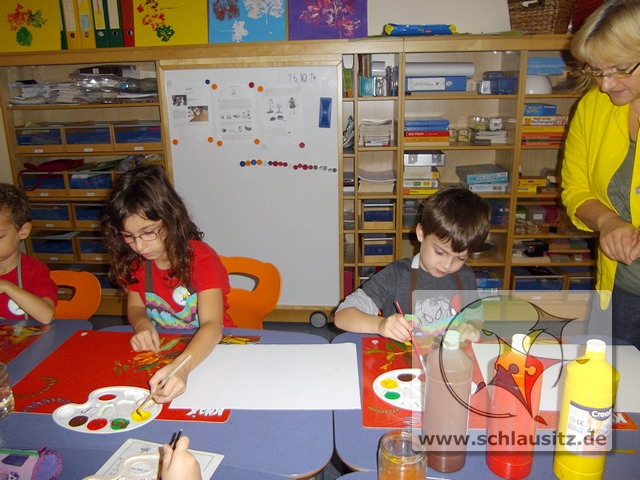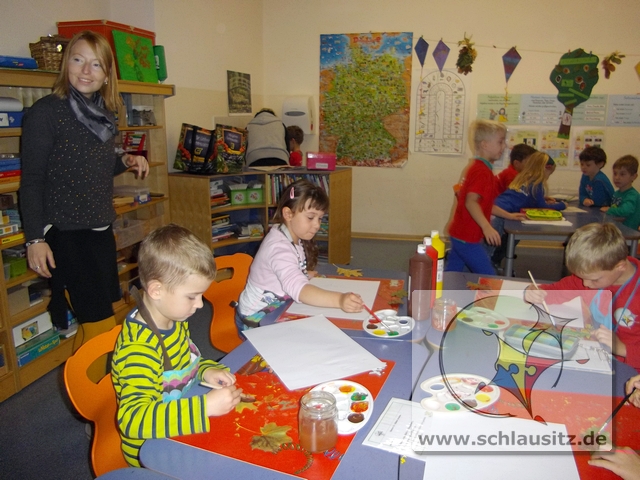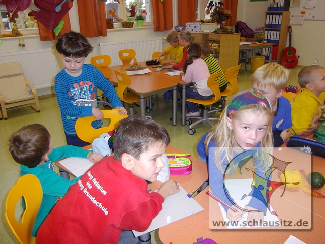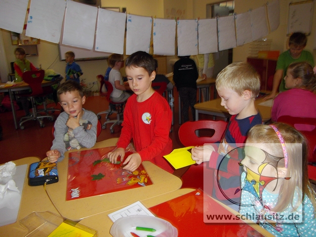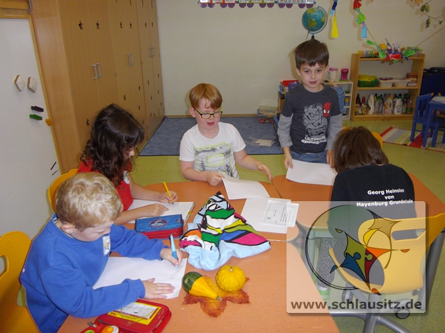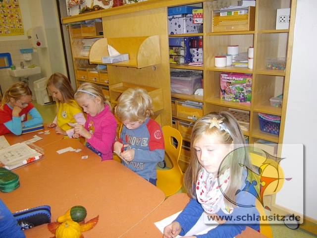 Mit diesem Lied eröffneten heute die Kinder der Saturn- und Neptunklasse den letzten Tag ihrer Herbstwerkstatt. Heute war aber ein besonderer Tag. Die Entdeckerzwerge haben die Schüler in der Werkstatt besucht, um gemeinsam mit ihnen zu basteln, zu rätseln und natürlich auch zu lernen. Selbstverständlich hatten auch die Kindergartenkinder ein Herbstlied mit im Gepäck.