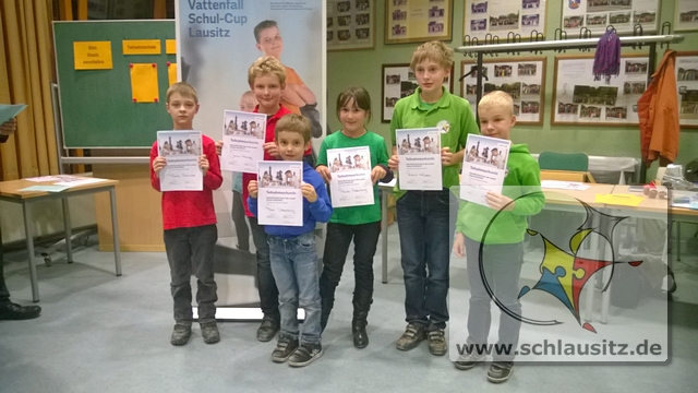 Robin, Jonas, Fabian, Paula, Luca und Max traten in der WK C an und lieferten sich spannende Partien mit den für uns ausgelosten Gegnern. Immerhin gab es weitere 7 Schulen aus den Landkreisen Oberspreewald-Lausitz und Elbe-Elster, die teilnahmen. In der letzten Partie entschied es sich dann – unsere Mannschaft belegte einen tollen 2. Platz und qualifizierte sich damit wie auch schon im Vorjahr für die Endrunde in Weißwasser im März 2015.