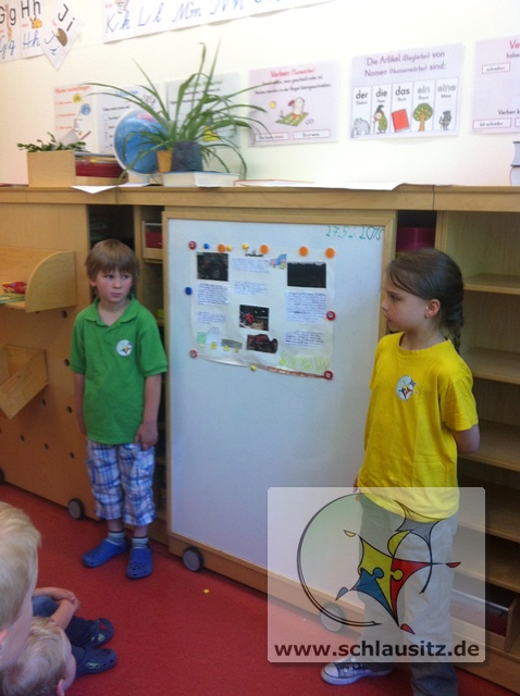 Auch die Kinder der Saturnklasse fanden interessante Themen: „Erdbeben“, „Fleischfressende Pflanzen“, „Vulkane“, „Bodenlebewesen“, „Arktis“, „Der Turmfalke“, „Der Lesothosaurus“.
