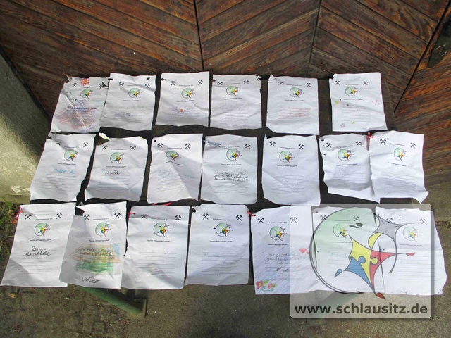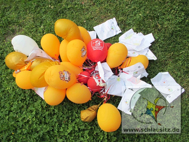 Erste Grüße an die Grundschule in Brieske zurückBeim Kinderbergmannsfest 2014 haben wir zum Abschluss der Veranstaltung Ballons in den Himmel geschickt. An diesen Ballons befestigten die Kinder Bilder und Grußkarten.