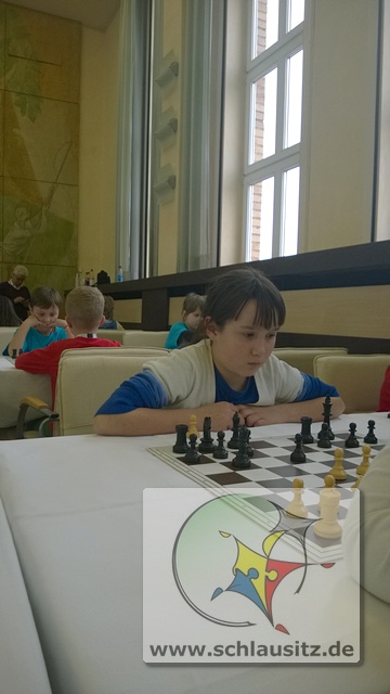 Insgesamt wurden 5 Partien gespielt. Nach der dritten Runde lagen unsere Spieler auf dem dritten Platz. Die letzten zwei Partien forderten noch einmal alles ab, denn unsere Gegner waren die Mannschaften der Astrid-Lindgren-Grundschule aus Falkenberg und der Lessing-Grundschule aus Zittau. Und trotz größter Bemühungen, langem Nachdenken und klugen Zügen mussten wir von den letzten acht Punkten 6 und einen halben an die Gegner abgeben.