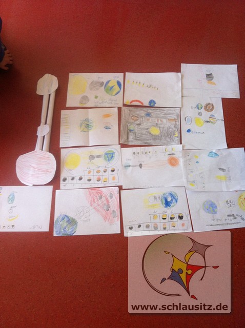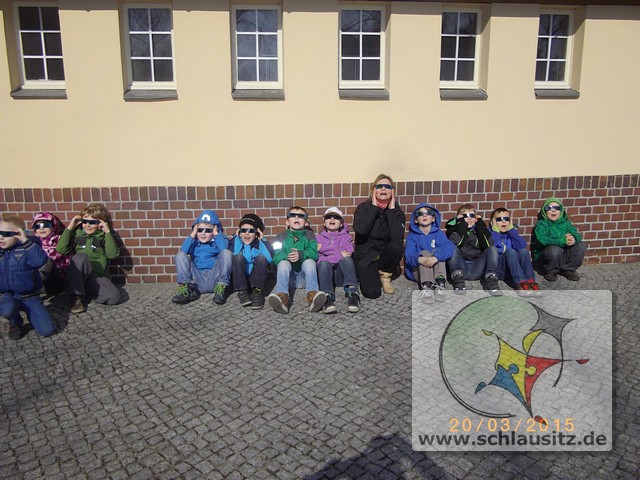 Als wir uns mit den Schutzbrillen ausgerüstet und diese aufgesetzt hatten, gingen wir nach draußen und schauten uns dieses besondere Erlebnis an. Dabei haben wir noch einmal besprochen, was die Sonne und der Mond ist.