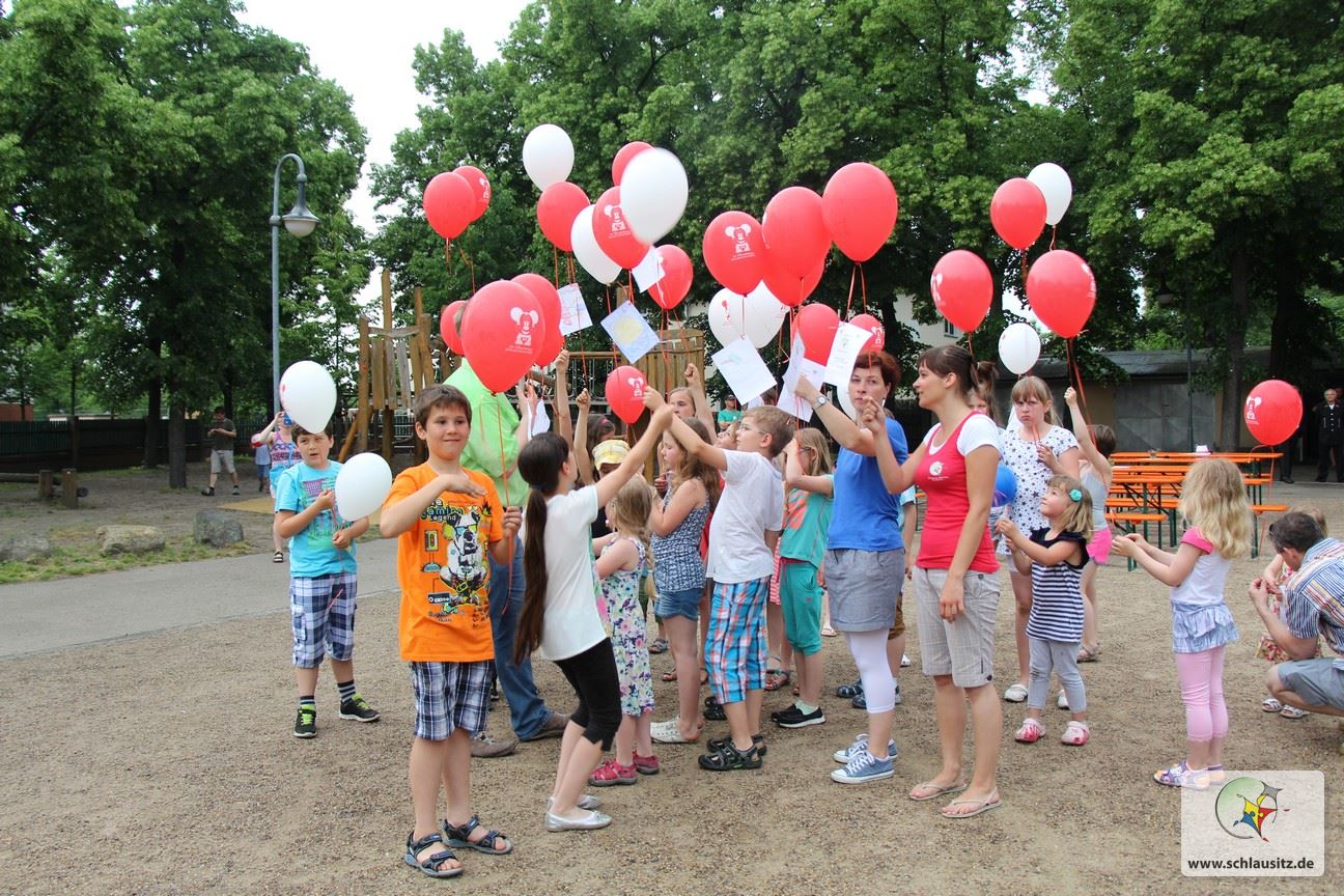 Zum Abschluss des Festes ließen die Kinder dann die Ballons in den Himmel steigen, an die sie ihre selbstgestaltete Grußkarten angehängt hatten.