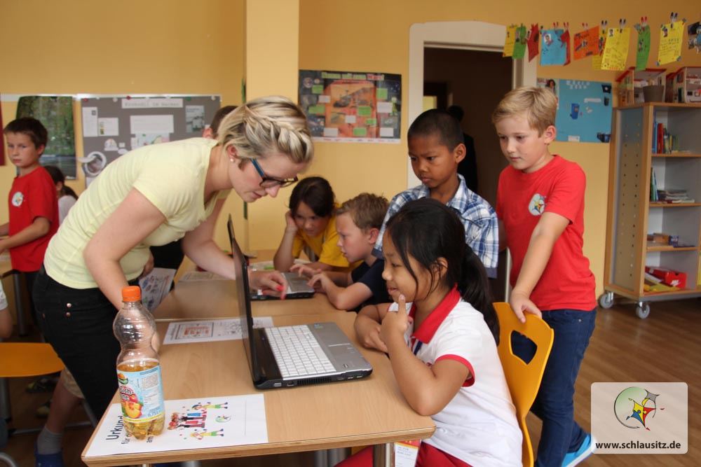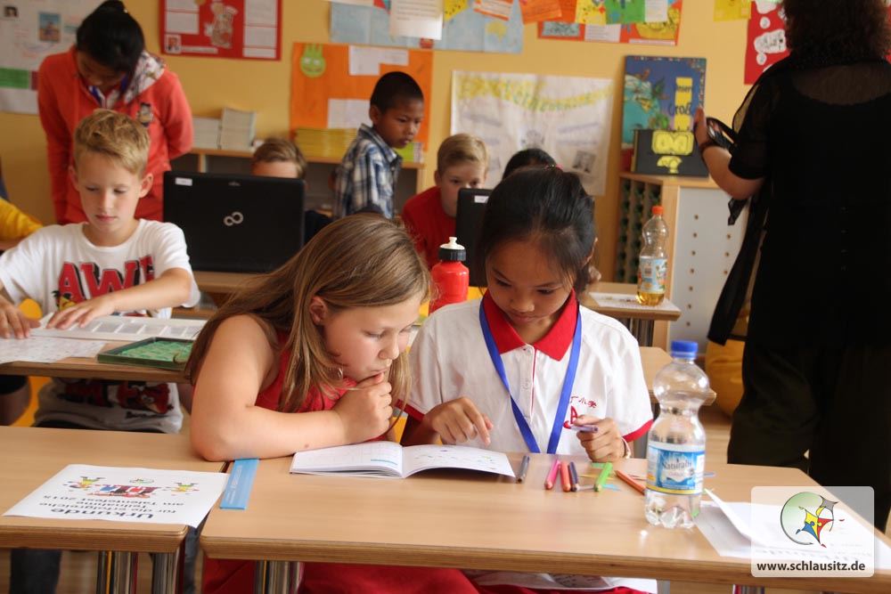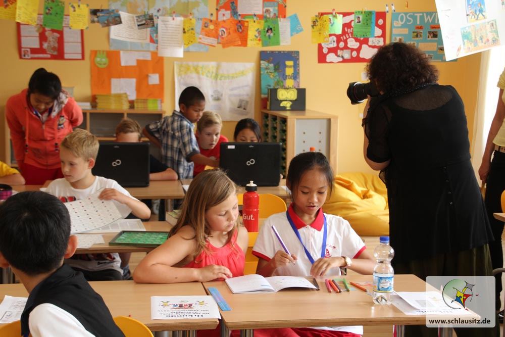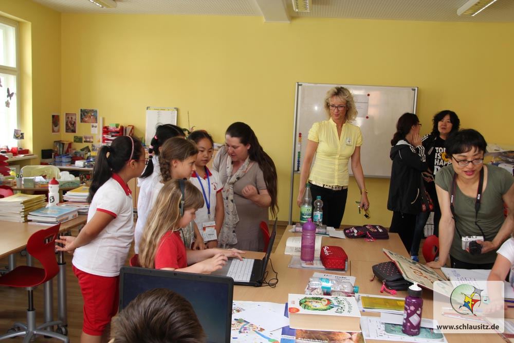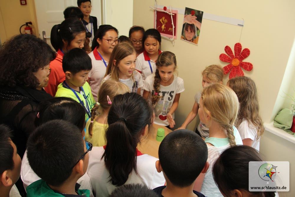 Sehr schnell ist das Eis gebrochen und die Schüler und Lehrer gehen in die gemeinsame Kommunikation. Ein bisschen Englisch, ein bisschen Hände und Füße, viel Lächeln, viel respektvolles Verbeugen – so läuft der Besuch von 28 chinesischen Grundschülern der 4. und 5. Klasse und ihrer Lehrer in Senftenberg-Brieske ab. Die chinesischen Gäste waren über das Internet auf die Georg Heinsius von Mayenburg Grundschule Brieske aufmerksam geworden und hatten der spontanen Einladung der Schulleitung zugestimmt. „Natürlich haben wir uns über die Ehre gefreut, Pekinger Lehrer und Schüler bei uns zu Gast haben zu dürfen“, sagt Madlen Schwarz, Geschäftsführerin der Lausitzer Bildungsträger gGmbH.