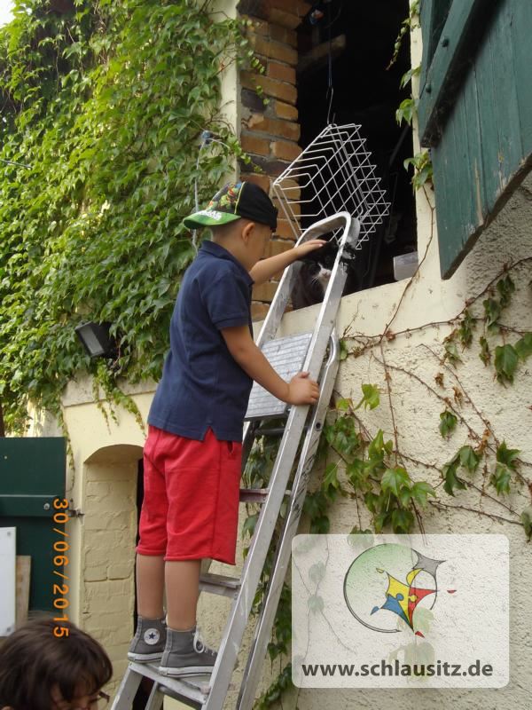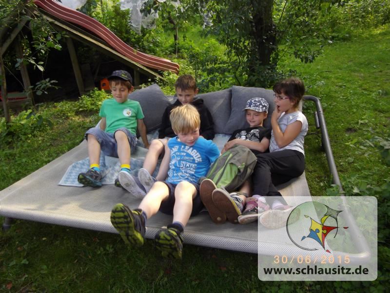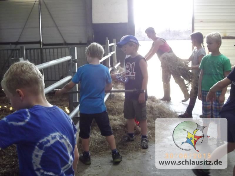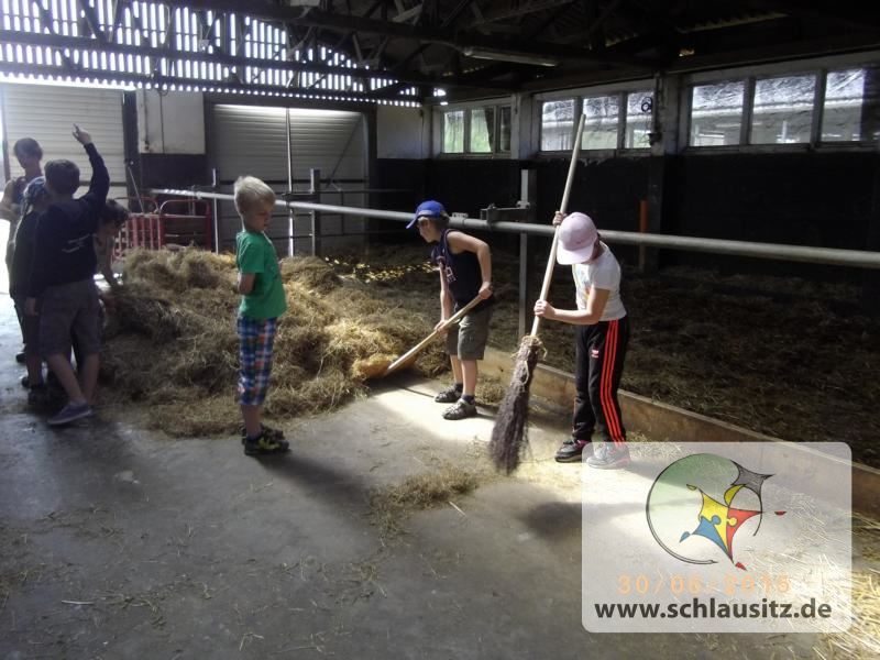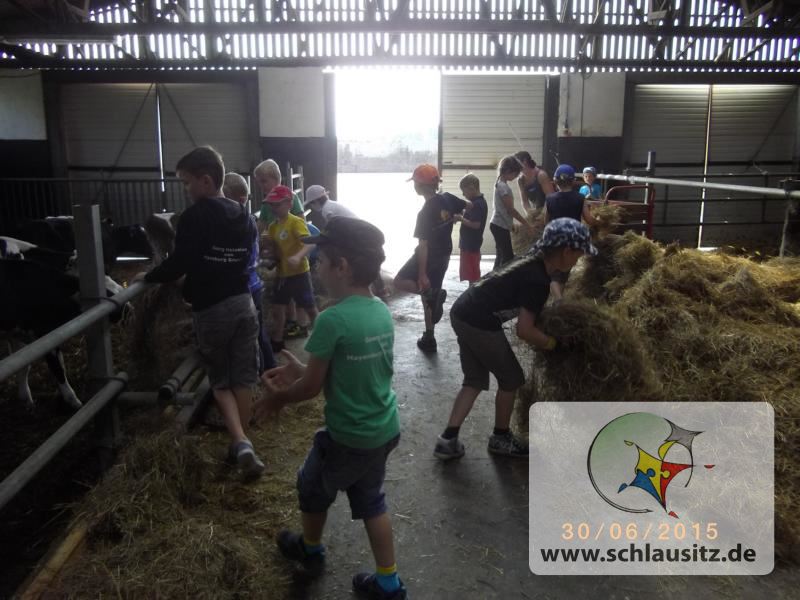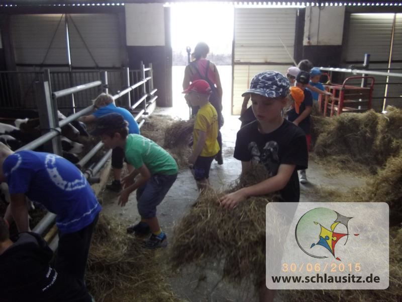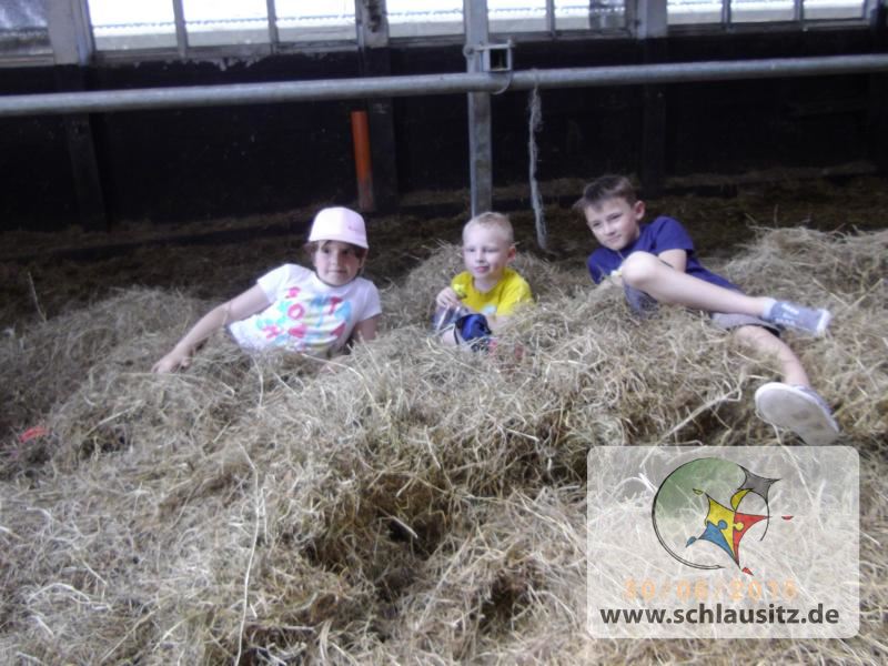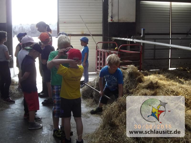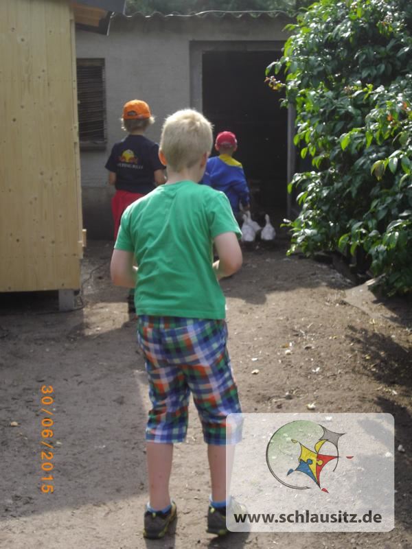 Für die Neptunklasse hieß es am 30.6. nicht „Die Schulbank drücken und lernen“, sondern wir stiegen früh in den Bus und ab ging die Fahrt nach Schöllnitz zu unserem Klassenkameraden Julian. Familie Mambk/Kettner lud uns zu ihrem kleinen Bauernhof ein. Dort angekommen, staunten wir, als wir von dem Wachhund Kai begrüßt wurden, denn dieser war wirklich groß. Julian zeigte uns auch noch seine Katze mit ihrem Nachwuchs, die Tauben, Hühner, Enten und Gänse, die wir sogar füttern durften. So einfach mit dem Füttern war es dann leider doch nicht, denn sie liefen immer weg.