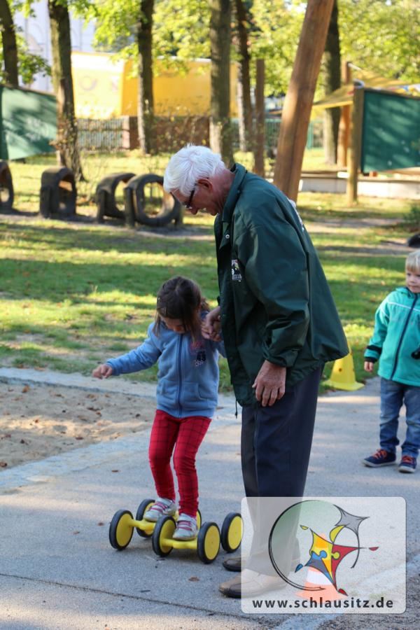 Wenn Siggi Sicher im Aufprallsitz liegt, Melonen Helme tragen und Rollerführerscheine verteilt werden, dann ist Verkehrssicherheitsmonat an den Schlausitz-Bildungseinrichtungen in Brieske. Einen ganzen Monat lang standen die Projekte und Aktivitäten an Kindertagesstätte und Georg Heinsius von Mayenburg-Grundschule unter dem Stichwort Verkehrssicherheit. Ein ganzes Bündel von Aktivitäten begleitete die Kinder, Erzieher und Lehrer durch den Monat. „Wir haben viele Partner aus der Region gewinnen können, uns zu unterstützen und sind der Senftenberger Polizei, der Kreisverkehrswacht OSL e.V und der freiwilligen Feuerwehr Brieske sehr dankbar“, sagt Geschäftsführer Uwe Schwarz.