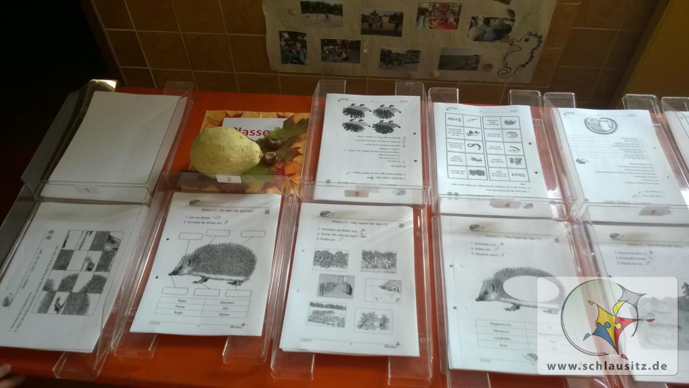 In den zwei letzten Wochen vor den Ferien arbeiteten die Schüler der Klassen 1 und 2 an ihrer Herbstwerkstatt. Es drehte sich diesmal alles um den Igel. Es wurde geforscht, gelesen, geschrieben, gerechnet und auch gebastelt. Die Schüler fanden heraus, wie das Jahr des Igels verläuft und was er in welcher Jahreszeit tut. Sie lernten den Körperbau des Igels kennen, seine Nahrung und seine Feinde. Ganz aktuell war die Frage „Wie überwintert der Igel und wie können wir ihm dabei helfen?“. Dazu gab es eine Anleitung zum Basteln einer „Igelüberwinterungskiste“. Zum Abschluss konnten in der Schule und dann zu Hause kleine Igel gebastelt werden. Ob diese aus Eicheln und Kastanien, aus Zeitungsabschnitten oder mit Hilfe von Wollfäden gestaltet wurden, durften die Kinder selbst entscheiden. Vielleicht schaut ja der eine oder andere Schüler jetzt etwas genauer hin, wenn er einen kleinen Igel im Herbst durch den Garten huschen sieht.