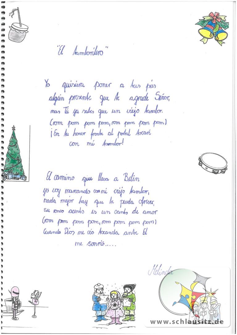 Unsere Spanisch-Schüler der dritten bis sechsten Klasse haben als Weihnachtsgeschenk eine Mappe mit vielen persönlichen Wünschen, Liedern und Gedichten in spanischer Sprache erstellt und nun dem Postboten übergeben.
