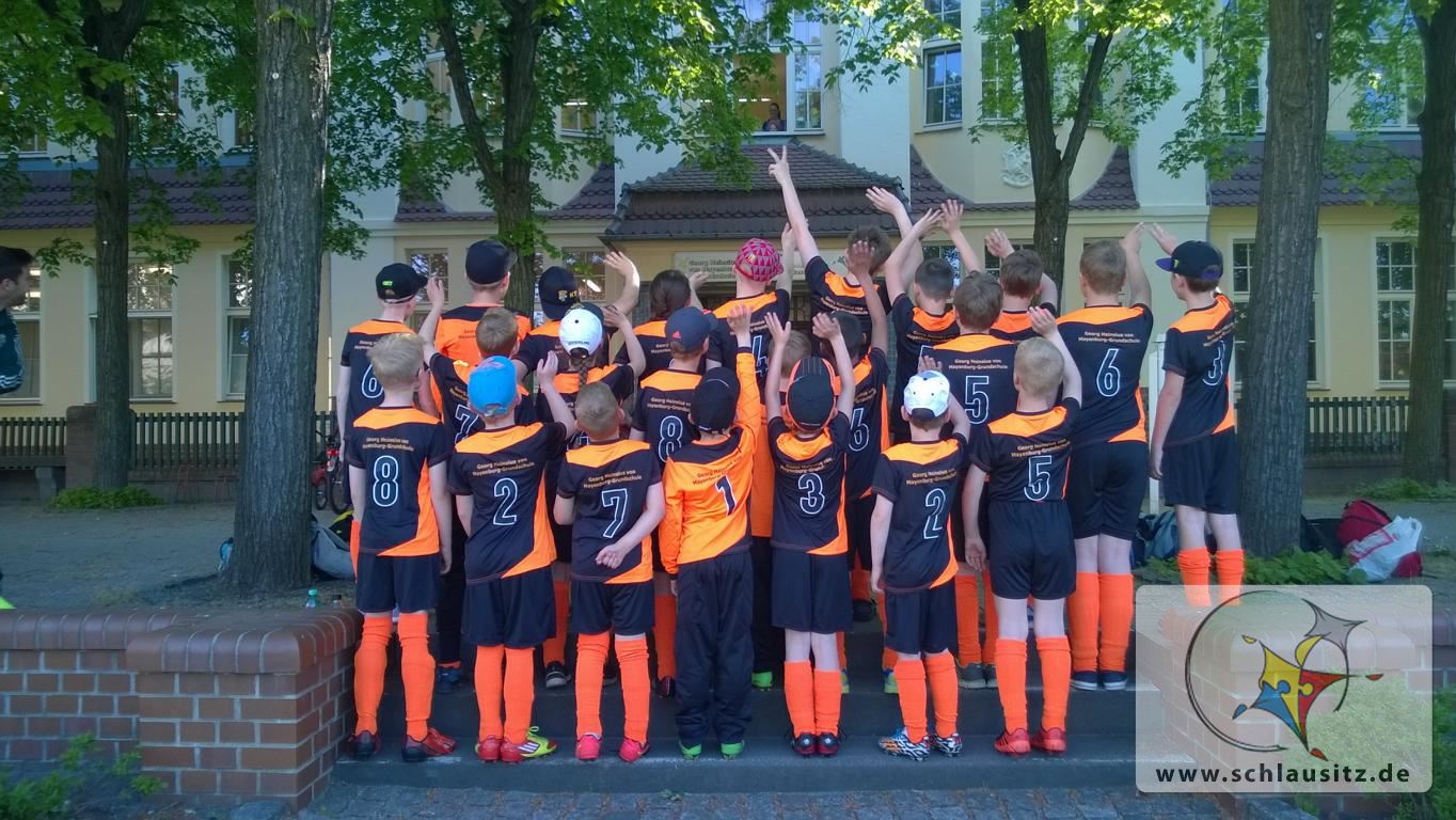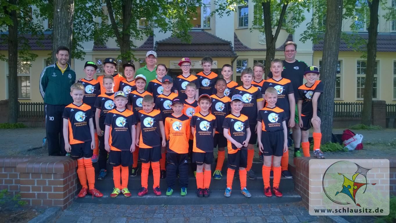 Traditionell, wie jedes Jahr im Mai, hat der FSV Brieske Senftenberg am 12.05.2016 zu den Schulmeisterschaften im Fußball eingeladen. Dabei gab es in der diesjährigen Auflage ein Rekordergebnis zu verzeichnen. Es nahmen 28 Teams, darunter 6 reine Mädchenmannschaften teil. Unsere Georg Heinsius von Mayenburg-Grundschule schickte in allen Altersstufen, jeweils ein Team in das Rennen. Pünktlich um 8.00Uhr marschierten über 20 Schüler unserer Schule, in schwarz/orangen Trikots in Richtung Wettkampfarena. Dort angekommen, ging es auch sofort mit der Erwärmung bzw. dem Einspielen los.