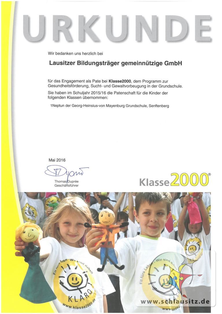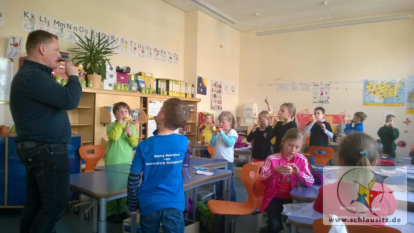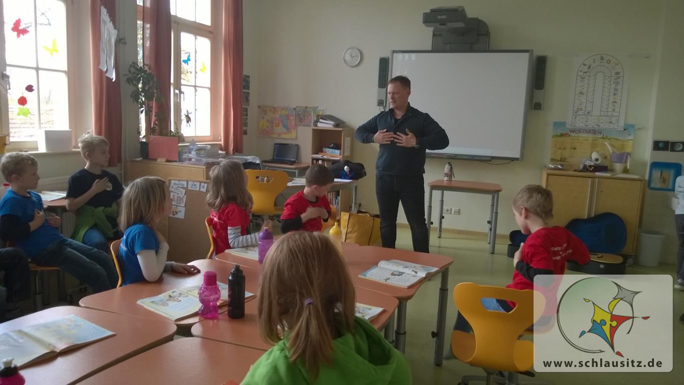 Am Montag hatten die Schüler der Klassen 1 und 2 Besuch von Herrn Zuchold. Er besuchte uns im Rahmen des neuen Schulprojektes „Klasse 2000“. Dass wir an dem Projekt teilnehmen dürfen verdanken wir der finanziellen Unterstützung der Stadt Senftenberg und der Lausitzer Bildungsträger gGmbH. Während des Projektes werden wir viele neue Sachen lernen und können auch feststellen, was wir schon alles über uns, unseren Körper, unsere Mitmenschen und unsere Umwelt wissen. Wir lernten „Klaro“ kennen, der uns neben Herrn Zuchold durch das Projekt begleiten wird.