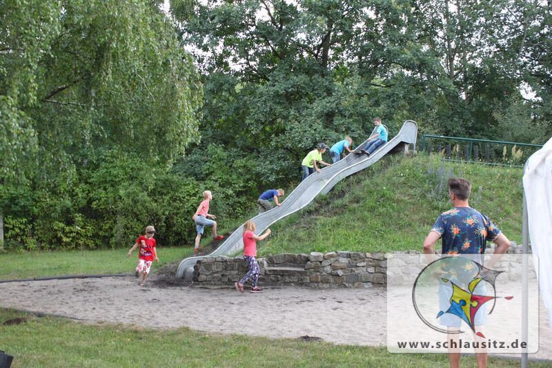 Als die Kinder von ihrer Erlebnistour zurückkamen, gab es dann noch ein leckeres Eis von den Betreuerinnen. Anschließend konnten sie das Camp erkunden, die von Eltern bereitgestellte Hüpfburg nutzen oder einfach nur spielen und toben. Abgerundet wurde der Abend durch das gemeinsame Grillen, das durch die fleißig mitgebrachten Salate und Beilagen sehr üppig ausfiel.