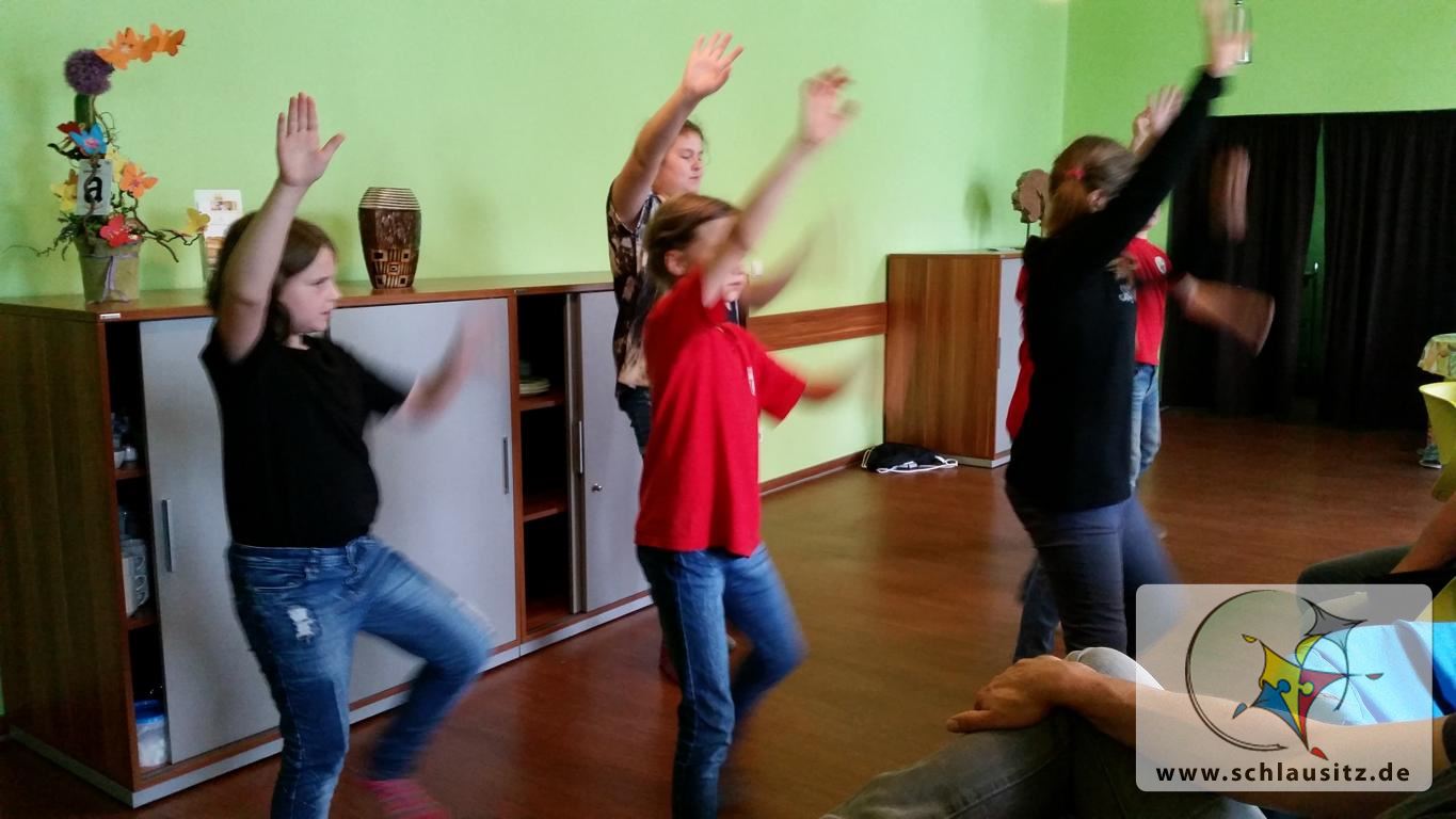 Die Frühstücks-Energie wurde anschließend mit freshen Beats aus dem Ghettoblaster in Tanz- und Zumba-Vorführungen umgesetzt. Die anwesenden Eltern staunten nicht schlecht über die Jupiter-Bewegungstalente. Zum Ende der Abschieds-Runde durften sich dann auch alle Eltern an einer Zumba-Nummer versuchen. Hier wurde am Ende mehr gelacht als getanzt.
