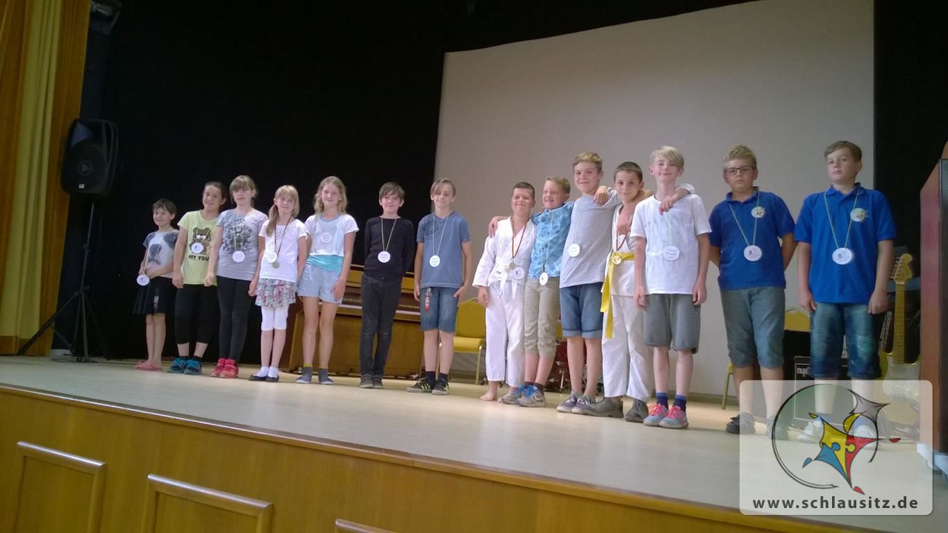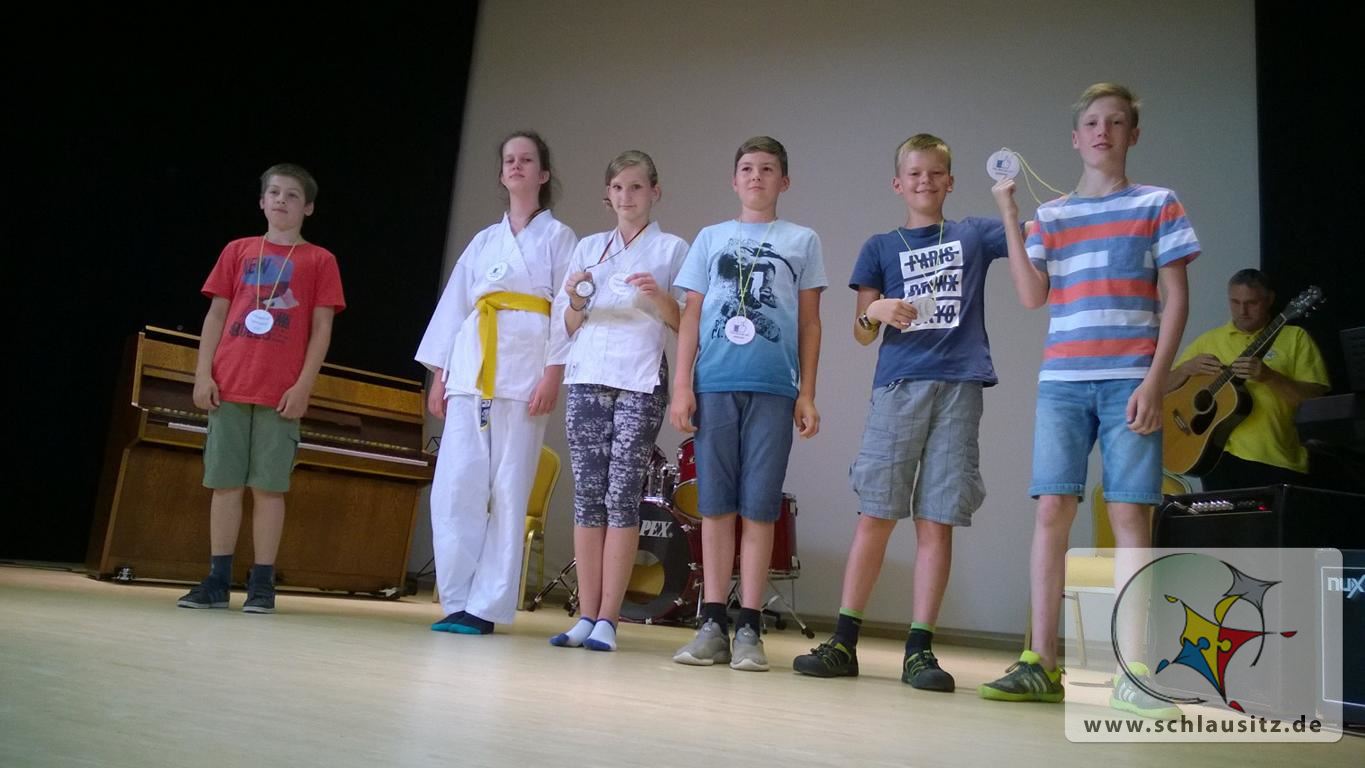 Ein Schuljahr neigt sich dem Ende und wie jedes Jahr präsentierten die Schüler der Georg Heinsius von Mayenburg-Grundschule ihr Können beim Talentefest im Saal der Kaiserkrone. Achtundzwanzig Beiträge standen auf dem Programm und dabei wurde den Zuschauern viel geboten. Wir lauschten Liedern, die vom Keyboard, der Gitarre oder am Schlagzeug gespielt wurden, wir sahen uns Solo-, Paartänze und Gruppenchoreografin an und wir hatten die Ehre die Schiedsrichter beim Karateturnier zu sein. Sportlich wurde uns auch einiges geboten. So kam das BMX und Mountanbike zur Geltung. Tolle Akrobatikkünstler waren am Start und zeigten ihr Können. Auch ein selbst einstudiertes Theaterstück fand Beifall beim Publikum. Unser Schulchor und die Schulband rundeten das ganze Programm ab.