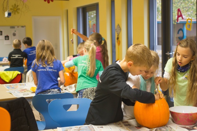 Die Beschäftigung mit fremden Kulturen, Bräuchen und Wertvorstellungen gehört zu den Zielen des Englischunterrichts. Um den Schülerinnen und Schülern der Georg Heinsius von Mayenburg Grundschule das Fest näher zu bringen, wurde zunächst der Wortschatz mit Hilfe der Methode des Storytelling eingeführt und durch verschiedene Aktivitäten gefestigt. Der Abschluss der Halloween- Einheit wurde durch die Herstellung eines Produktes gekrönt. So bastelten unsere jüngsten Schlausitzer der Neptun- und Saturnklasse eine Fledermaus. Die Schülerinnen und Schüler der Jupiter- und Uranusklasse verpassten in kleinen Gruppen jeweils einem Kürbis ein gruseliges Gesicht.