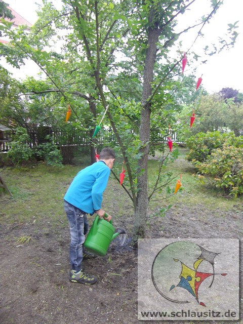 Am Mittwoch fand zum letzten Image00012Mal in diesem Schuljahr der Schnupperunterricht statt. Die zukünftigen Schulkinder hatten eine ganz besondere Aufgabe: sie durften Zuckertüten "pflanzen". Nachdem der Dünger in der Erde war und kräftig gegossen wurde, wiederholten die Kinder noch einmal das bereits Gelernte und sangen gemeinsam unseren Schulsong. Beim nächsten Blick auf den Baum stellten sie fest, dass bereits kleine Zuckertüten daran hingen.... Auch diese wurden wieder gegossen und "beschworen" und alle waren gespannt, wie groß die Zuckertüten noch werden. In der Zwischenzeit ging es dann in die Kaiserkrone, um gemeinsam mit Frau Oldenburg die zukünftigen Klassenräume zu begutachten. Alle waren sehr aufgeregt, als sie auf dem Rückweg dann die großen Zuckertüten am Baum sahen! Für jeden war eine dabei und die Kinder waren sehr stolz, als sie sie überreicht bekamen.