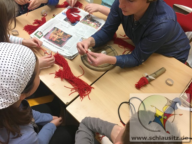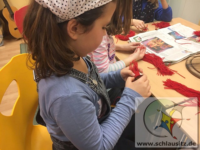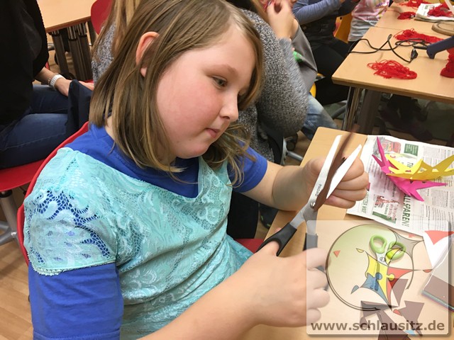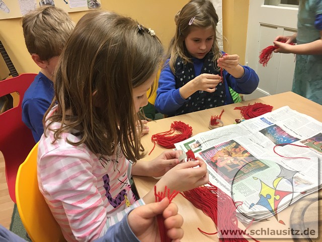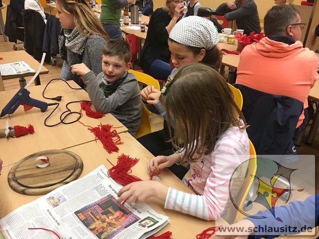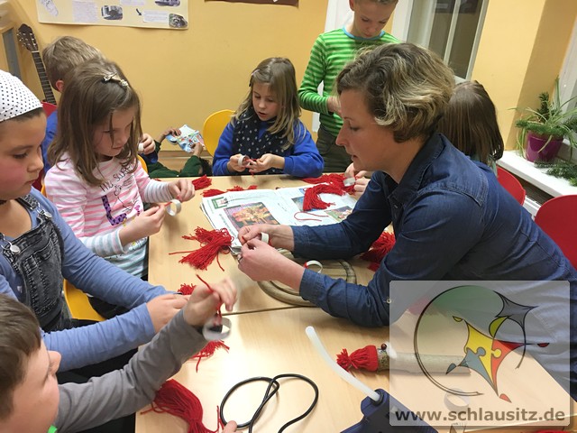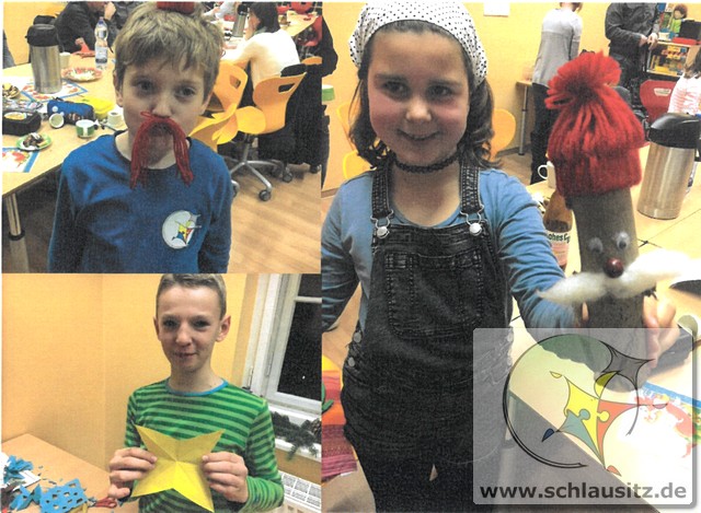 Frau Dr. Ludewig hatte sich außerdem zwei Bastelvarianten ausgedacht und viel Material dafür mitgebracht. Einige Kinder bastelten einen Weihnachtsmann, andere Kinder verzierten den Weihnachtsstrauß mit gebastelten Sternen.