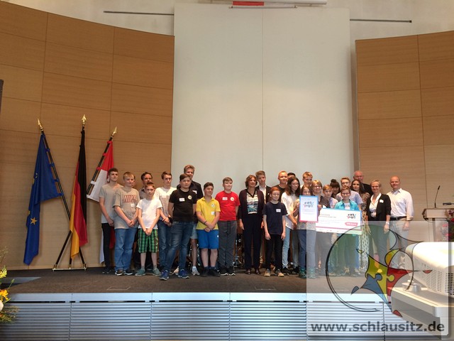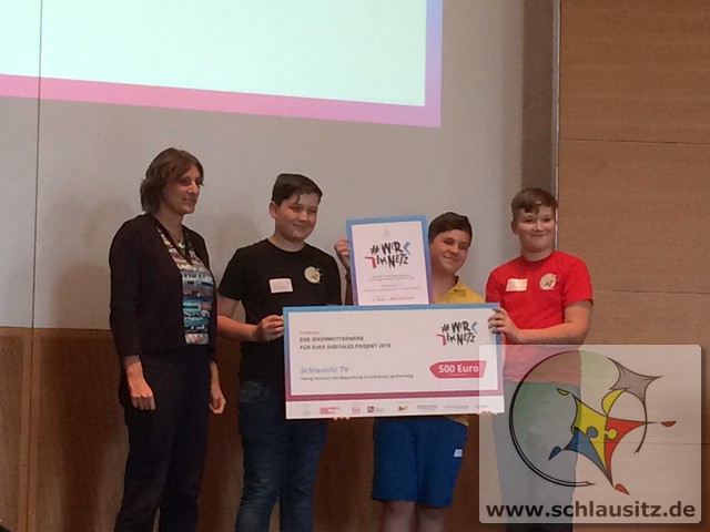 Das Bildungsministerium veranstaltete am 20. April 2018 in Potsdam das Dialogforum Bildung „Digital kompetent – Fokus Schule“, um mit Expertinnen und Experten aus der Schulpraxis, aus Politik, Medien und der Wissenschaft über die Digitalisierung im Schulbereich zu diskutieren. Im Rahmen des Dialogforum fand auch die Preisverleihung des Ideenwettbewerbs WIR IM NETZ statt. Schülerinnen und Schüler aus dem Land Brandenburg der SEK I und SEK II waren in einem Wettbewerb dazu eingeladen, ihre Ideen für ein digitales Brandenburg einzureichen. Die Video-AG unserer Georg Heinsius von Mayenburg-Grundschule hat (als einzige Grundschule!!) mit Ihrem Projekt „Schlausitz TV“ den 3. Platz erreicht. Aus den Händen von Bildungsministerin Britta Ernst nahmen die Schüler die Siegerurkunde und einen Scheck über 500 € aus der Staatskanzlei mit nach Brieske. Herzlichen Glückwunsch!