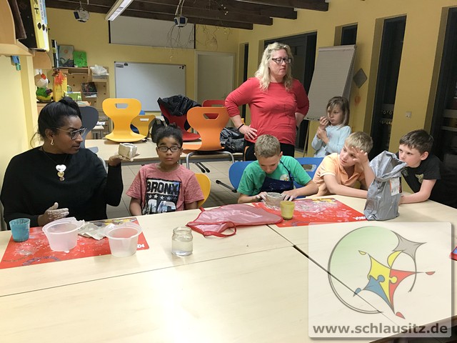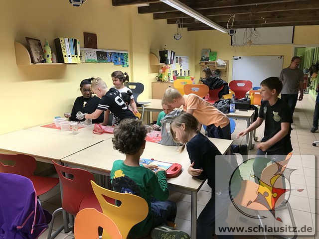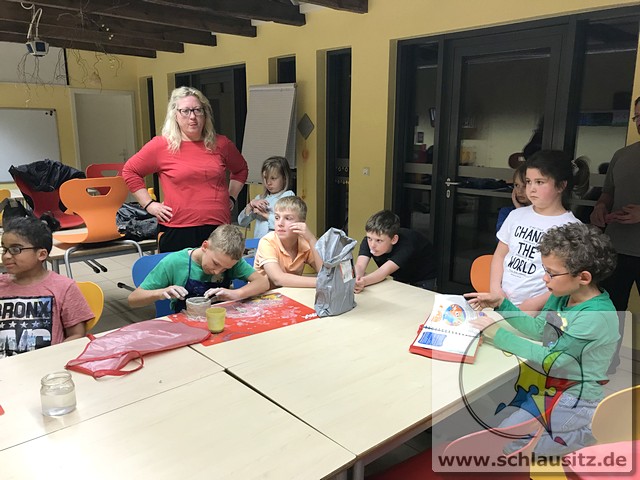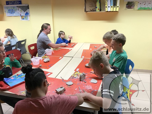 Als erstes haben wir unsere „Betten“ gemacht. Später haben wir mit Frau Bloedorn getöpfert. Es entstanden Schüsseln, Tassen oder Stiftehalter. Anschließend haben wir alle im Turmzimmer, unter Sternenhimmelbeleuchtung, aus unseren mitgebrachten Büchern vorgelesen. Danach wurde im Bett noch weiter geschmökert.