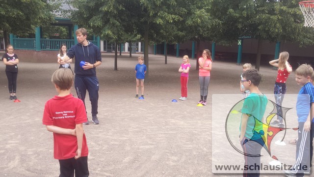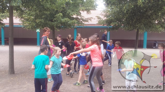 Zum Thema Bewegter Unterricht und Gesundheitsförderung sowie Fairplay und Teamentwicklung fand am 14.06. von 08:00- 13:50 Uhr eine besondere Schulveranstaltung statt. Mitarbeiter von symbioun Gotha gestalteten gemeinsam mit den Schülern und Lehrern unserer Schule einen interessanten Tag unter dem Motto: Olympia ruft: mach mit! Hierbei ging es z. B. um bestimmte Ergebnisse, die man erreichen kann, wenn man sich untereinander abspricht und gegenseitig hilft. Und dabei kam es nicht immer darauf an, der Erste zu sein, sondern sich so einzubringen, dass alle am Ende gemeinsam die Aufgaben erfüllen konnten. Zum anderen ging es auch um so ein wichtiges Thema wie Koordination. Hier wurden speziell die Reaktions-, Gleichgewichts- und Orientierungsfähigkeit in den Fokus gestellt und spielerisch mit den Schülern trainiert. Gerade im 7.-12. Lebensjahr lassen sich die koordinativen Fähigkeiten am besten ausbilden und sind damit Grundlage guter Lernergebnisse als Folge.