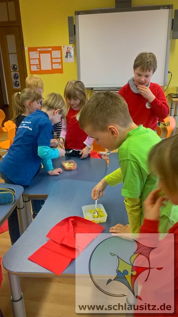 Bei den Klassen 1 und 2 dreht sich momentan alles um den Körper, unsere Sinne und damit verbunden auch um gesunde Ernährung. Heute haben wir uns ganz intensiv mit unserem Geschmackssinn beschäftigt. Nun wissen wir, welche „Geschmacksrichtungen“ wir schmecken können – süß, sauer, bitter… Danach haben wir unseren Geschmackssinn mit verbundenen Augen getestet. „Oh, ist ja leicht, ich weiß schon, was es ist.“, war ganz oft zu hören. Auch „Ist das lecker!“.