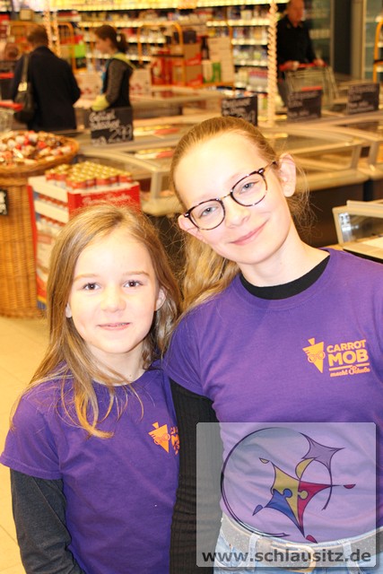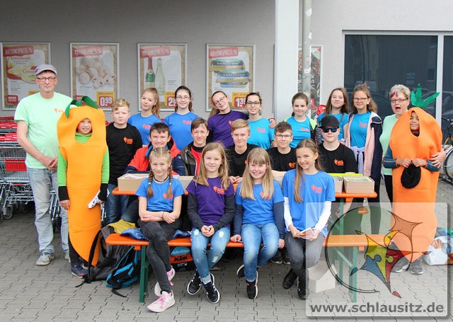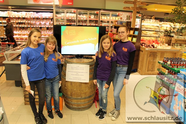 9:00 Uhr ging der Carrotmob los. Unser inhaltliches Anliegen bestand darin, möglichst viele Menschen anzusprechen, sich zum Thema Umwelt Gedanken zu machen. Schon am Anfang waren viele Leute da. 12:00 Uhr gab es eine leckere Mittagspause. Wir verkauften insgesamt zehn Kuchen und Torten und sammelten Spenden im Wert von 315,52 €. Dieses Geld wollen wir in Insektenhotels investieren, welche wir in Senftenberg und Brieske aufstellen werden.