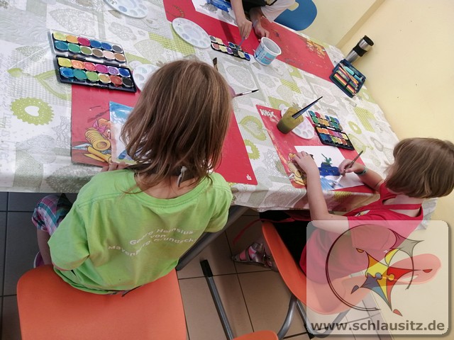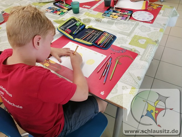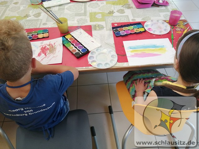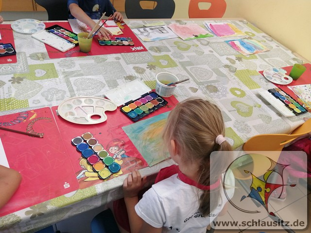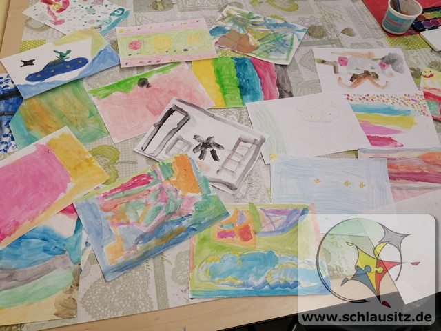 Die kleinen Kunstwerke wurden im Anschluss besprochen und erklärt. Die meisten Bilder zeigten im Farbspiel die Freude, den Spaß und viele Aktionen am letzten Wochenende zu Hause. Es gab auch das eine oder andere Bild, auf dem zu erkennen war, dass die dunkleren Farben die Oberhand behielten. Ob es der Streit mit der Freundin war, die Angst vor der an der Wand kriechenden Spinne oder die Gedanken, ob die sich im Urlaub befindende Lehrerin hoffentlich bald wieder da ist.