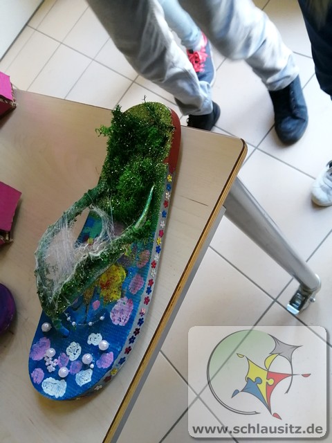 Die Jahrgangsstufen 5 und 6 sind im Unterrichtsfach „Kunst“ mal einen anderen Weg gegangen. Und das fast im Wortsinne: mit Schuhen sozusagen!