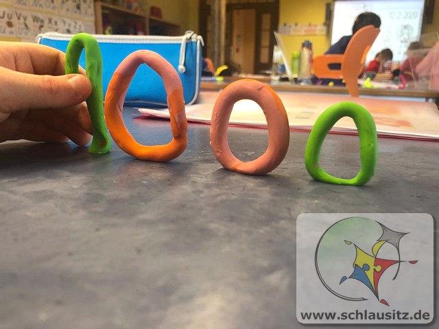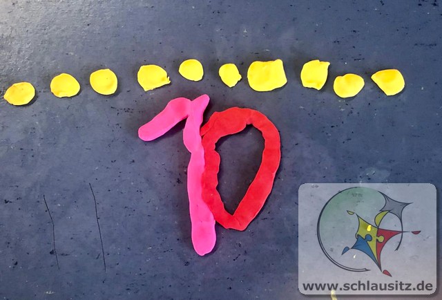 Gemeinsam mit den Schülern der ersten Klasse konnten unsere Schnupperkinder ihre Feinmotorik spielerisch schulen und Zahlen gestalten. Über das Drücken, Zerteilen, Ziehen und Modellieren schult Knete die motorischen Fähigkeiten der Hand und der kleinen Finger. Die Kinder finden heraus, wieviel Kraft sie aufwenden müssen, um die gewünschte Form zu erlangen. Die eigene Fantasie und Vorstellung wird zum Ausdruck gebracht. Die dreidimensionale und räumliche Vorstellung wird unbewusst trainiert. Sogar die kindliche Sprache wird gefördert. Begriffe wie das Rollen, Drücken, Verbinden, Trennen, klein, groß, kalt und warm, stehen in direktem Zusammenhang mit den Ausführungen beim Kneten.