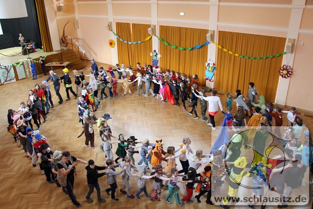 Am Rosenmontag trafen sich alle Schulkinder mit den größeren Kindergartenkindern im Saal der Kaiserkrone. Frau Kroll eröffnete die Faschingsfeier mit einer Rede und einige Kinder führten einen traditionellen Tanz der Aborigines auf. Danach wurden alle großen und kleinen Verkleidungskünstler im Kreis begrüßt und anschließend ging es mit einer Polonäse quer durch den Saal! Nach einer kurzen Disko konnten sich die Kinder an verschiedenen Ständen ausprobieren. Die Kinder der 5./6. Klasse bereiteten verschiedene Stände vor wie z. B. "Schlüssel suchen", Kegeln, Büchsenwerfen oder Stopptanz. Weiter gab es eine Schminkecke und eine Losbude mit tollen Preisen.
