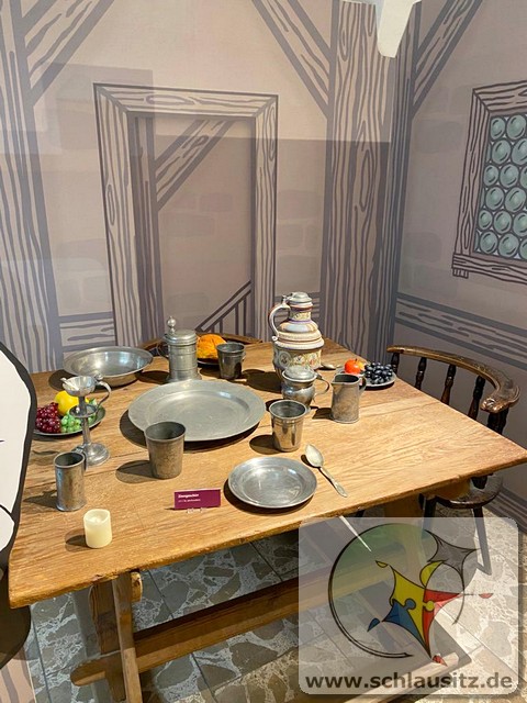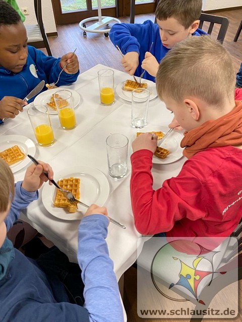 In der Woche vor den Winterferien war mächtig was los bei der Jahrgangsstufe 1/2. Im Museum Festung Senftenberg nahmen die Kinder an einer Führung durch die Ausstellung „Zu Tisch - vom Essen und Fressen“ teil. Auf einer Zeitreise, die im Jahr 1631 auf dem Senftenberger Marktplatz begann, konnten die Mädchen und Jungen sich ein Bild davon machen, wie in den letzten Jahrhunderten gespeist wurde. Von den Essgewohnheiten der einfachen Leute bis hin zu den opulent gedeckten Tafeln der Könige war alles dabei. Neben den Themen, wie dem Erwerb von Lebensmitteln und deren Zubereitung, wurden auch Fragen zu dem Essverhalten und den Tischmanieren beantwortet. Wieder in der Gegenwart angekommen, durften die Kinder am Ende der Führung bei einer leckeren Waffel zeigen, was sie zum Thema Knigge und dem Benehmen am Tisch schon alles wissen und können. Als Weiterführung des Museumsbesuches erwartet die Schülerinnen und Schüler im Fach Lebensart in den kommenden Wochen noch eine Knigge-Überraschung in unserem wunderschönen Festsaal der Schule.