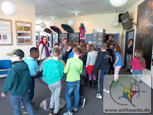 Die Reise durch unser Sonnensystem nahm in dieser Woche ihren Höhepunkt. Für die Klassenstufen 3 und 4 ging es mit dem Zug nach Cottbus in das Planetarium. Uns wurde eine tolle Vorführung geboten, die uns alle zum Staunen brachte. Wir konnten einiges über die Sternenbilder am Himmelszelt lernen, sind auf einigen Planeten unseres Sonnensystems gelandet und konnten uns dort ein wenig umsehen. Im Anschluss wurden auch unsere Fragen von den MitarbeiterInnen des Planetariums beantwortet. Die Kinder und auch die Erwachsenen waren von diesem Tag völlig begeistert. Wir freuen uns jetzt schon auf den nächsten Besuch im Planetarium Cottbus.