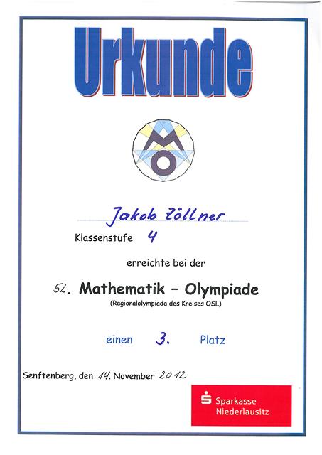 Jakob Zöllner und Lukas Donath aus den Jahrgangsstufen 4 und 3 vertraten unsere Schule am 14. November bei der Regionalrunde der 52. Mathematikolympia. Beide gehören zu den besten Mathematikern unserer Schule.