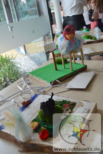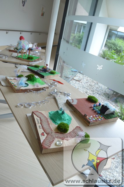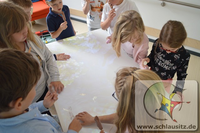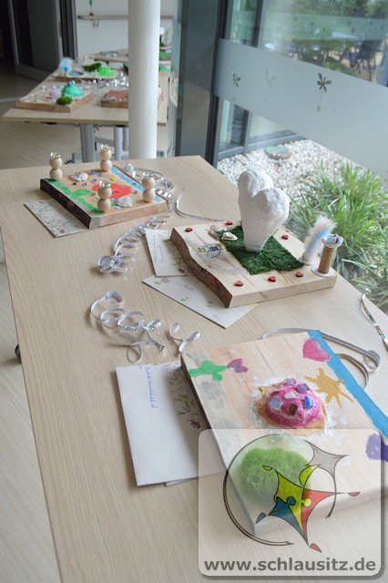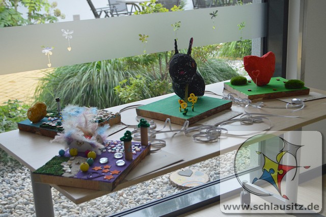 Am 17.06.23 ging es dann zu einer kleinen Vernissage in das Kinderhaus Pusteblume in Burg, wo alle Denkmäler ausgestellt und den Familien vorgestellt wurden.