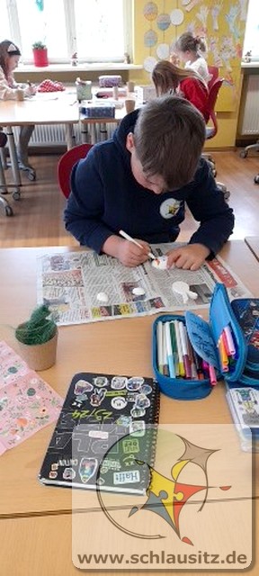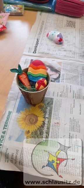 Image00009Am letzten Tag vor den Osterferien wurde es in der Jahrgangsstufe 3/4 wieder einmal kreativ. Es wurden kleine Osterkörbchen gebastelt, Keramikfiguren bemalt und kleine Küken gebastelt. Die Kinder konnten ihre ganze Kreativität ausleben und dabei entstanden tolle Ergebnisse.