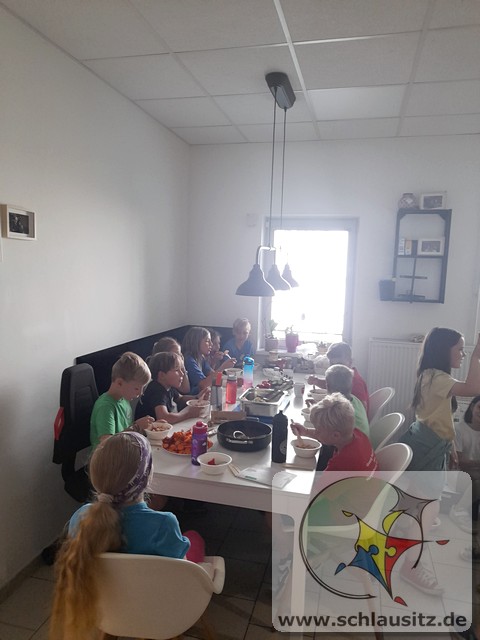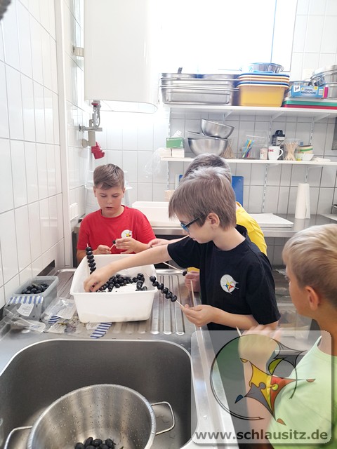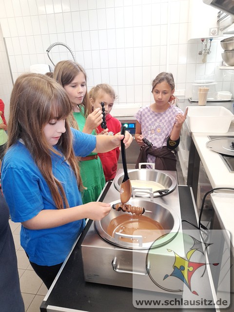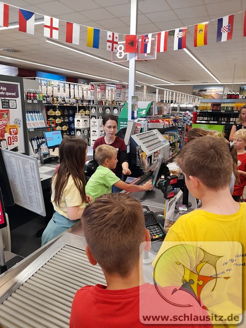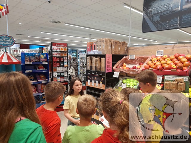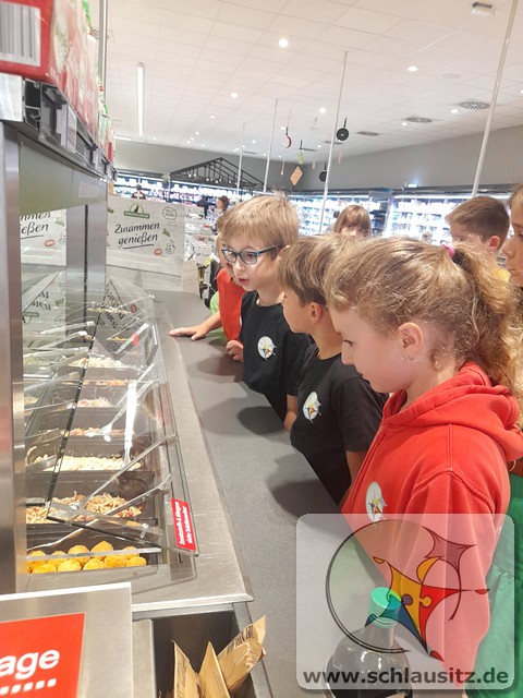 Am Montag und Dienstag in unserer Gesundheitswoche hatten die Schülerinnen und Schüler der Jupiter- und Uranusklasse die Gelegenheit, einen Einblick hinter die Kulissen eines Lebensmittelgeschäfts zu erhalten. Familie Radke hat uns mit offenen Armen empfangen und uns ausführlich alles erklärt. Unsere Kinder durften sogar richtig mit anpacken. So wurden neue Werbeschilder aufgehängt, Kühlregale gespiegelt und Pappe gepresst. Auch einen Einkauf tätigten unsere Schülerinnen und Schüler. Hierfür erhielten sie ein Budget, mit dem sie ein Frühstücksbuffet für den gesamten Jahrgang vorbereiten sollten. Einzelne Komponenten wurden von den Kindern in der Gruppe besorgt, allein über das Kassenband gezogen und durch einen Mitschüler abkassiert. Des Weiteren durften unsere fleißigen Helfer Weintrauben mit Schokolade überziehen und diese dekorieren. Da man aber nicht allein von Schokolade satt werden kann, haben die Kinder geholfen, ein gesundes Mittagessen mit vorzubereiten. Die Gemüsebeilage durften die Kinder aussuchen und vorbereiten.