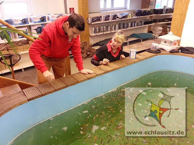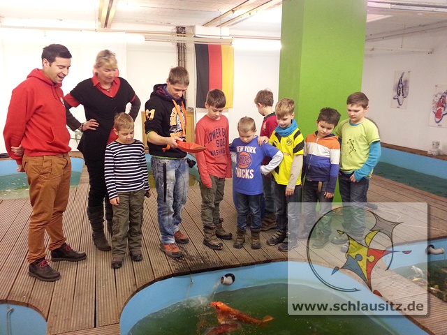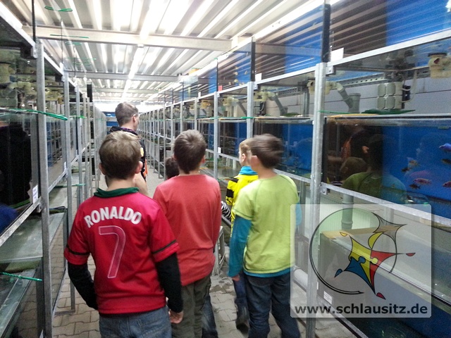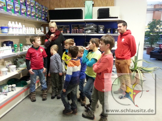 An unserem zweiten Winterferientag wurden wir in die Aquaristik eingeführt. Sven, ein Mitarbeiter von „Interfish" führte uns durch die Unterwasserwelt und vermittelte uns sein Fachwissen sehr anschaulich und geduldig. Er erklärte uns die einzelnen Fische und ihre Lebensweise und natürlich auch, was für die Pflege und das Zubehör notwendig ist. Dieser Ausflug war sehr informativ und aufregend. Besonders interessant war für uns der" Axolotl", ein aquatil lebender mexikanischer Schwanzlurch aus der Familie der Querzahnmolche.