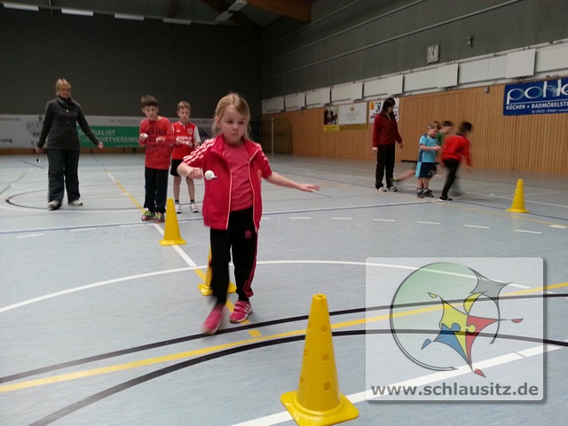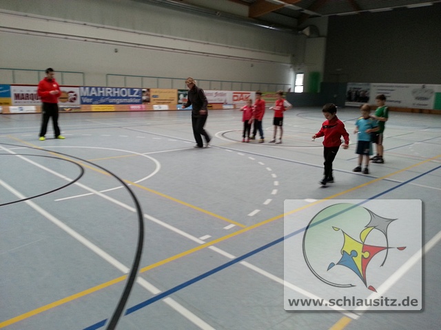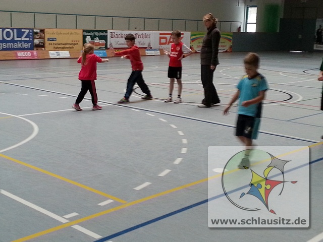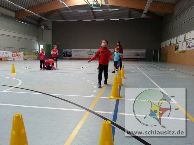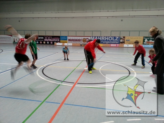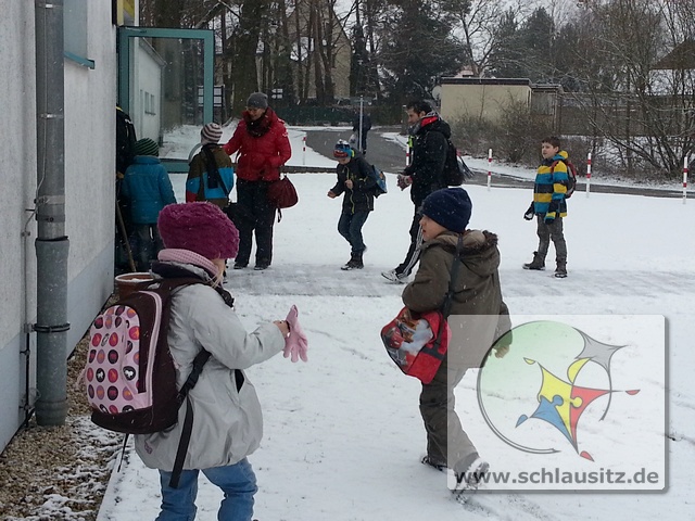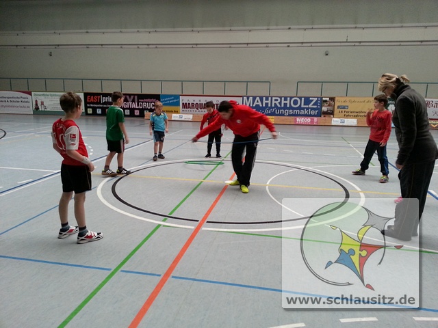 Am Mittwoch fand unsere Kinderolympiade statt. Dazu fuhren wir nach Großkoschen in die Sporthalle. Nach einer kleinen Erwärmung wurden die Volksspiele aus verschiedenen Ländern eröffnet. Wir übten uns in den Spielen, wie „Die Uhr", „Die Mauer", „Die Zeitbombe" , „Das Halstuch" und „Der Schneeballlauf". Nach unseren sportlichen Aktivitäten wanderten wir im Schnee am Strand entlang und freuten uns auf das Mittagessen.