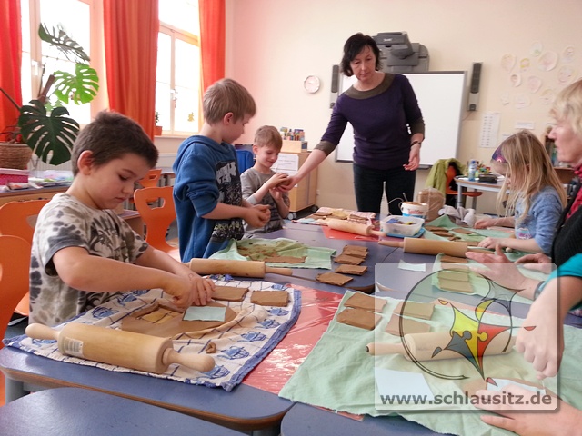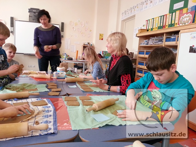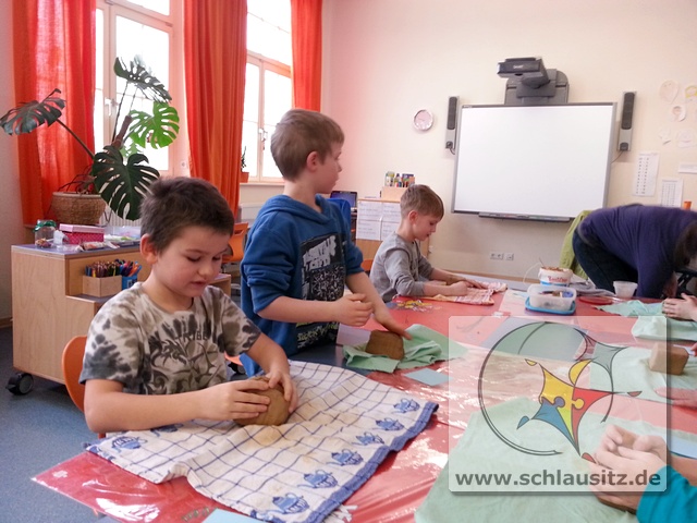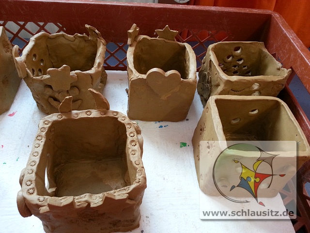 Am Donnerstag ließen wir unserer Kreativität freien Lauf und töpferten unter fachlicher Anleitung wunderschöne Windlichter. Die Töpferin, Frau Klemann war zu Besuch und holte Ihre Töpferei in unser Klassenzimmer. Jeder bekam ein großes Stück Ton, dass er zu einer glatten und nicht löchrigen Fläche bearbeiten sollte. Anschließend schnitten wir mit Hilfe einer Schablone 5 Vierecke daraus, die wir zu einem Windlicht zusammensetzten. Nun kam das Gestalten und Dekorieren an der Reihe. Jeder hat sein individuelles tolles Windlicht für zu Hause angefertigt. Aber bevor dieses seinen Platz zu Hause findet, heißt es erst mal Geduld haben, denn dieser Rohling muss erst einmal gebrannt werden.