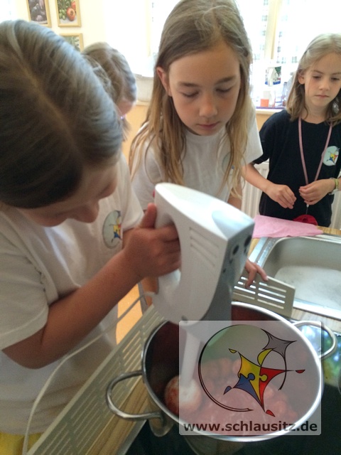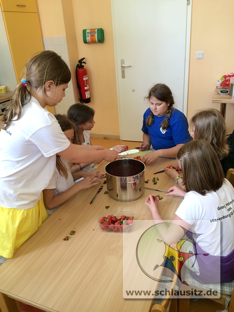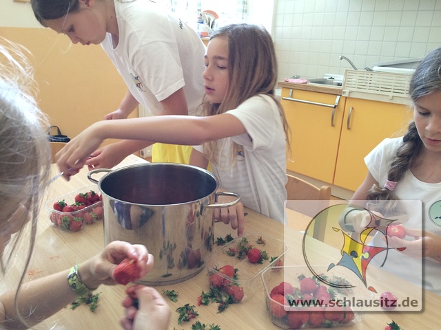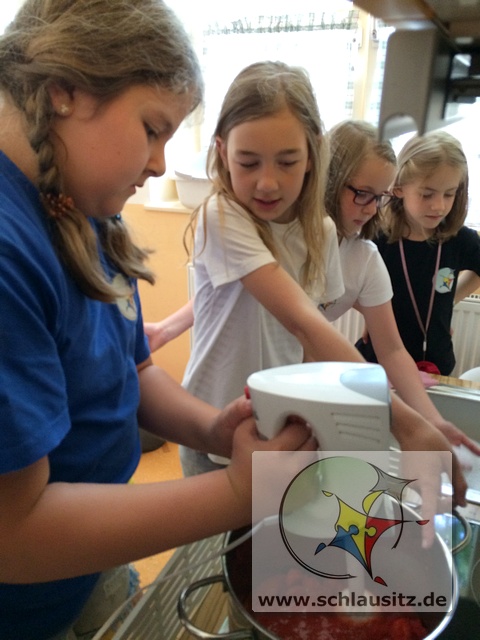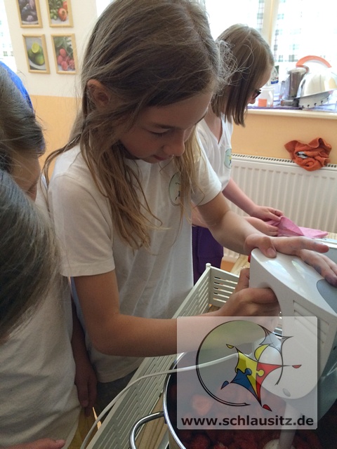 In der AG Heinzelmännchen stellten wir leckere Erdbeermarmelade her.