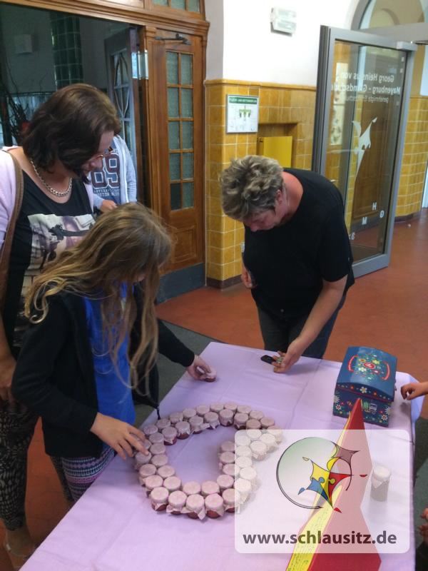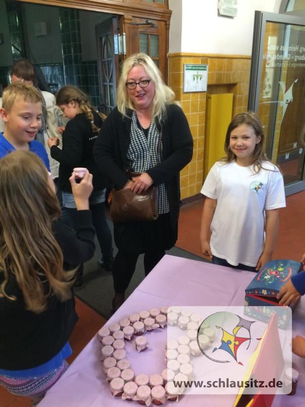 Unser Verkauf der Erdbeermarmelade im Eingangsbereich des Kindergartens war ein voller Erfolg.