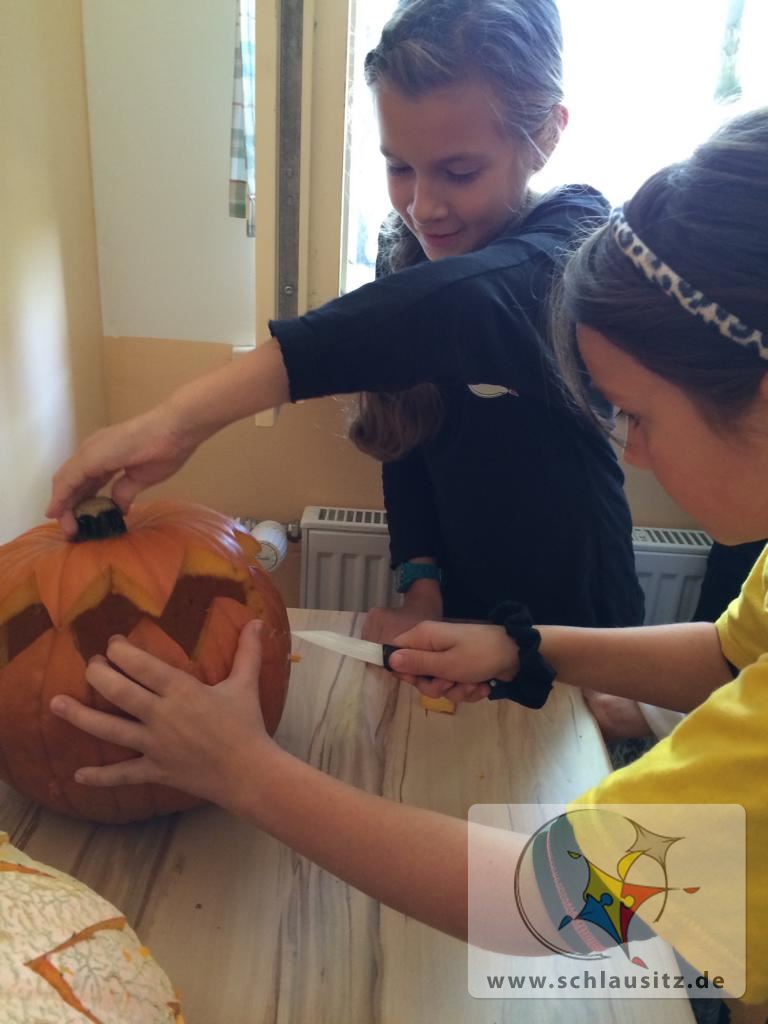 Am ersten AG-Tag höhlten wir große Kürbisse aus, um sie später im Hausflur als Dekoration aufzustellen.