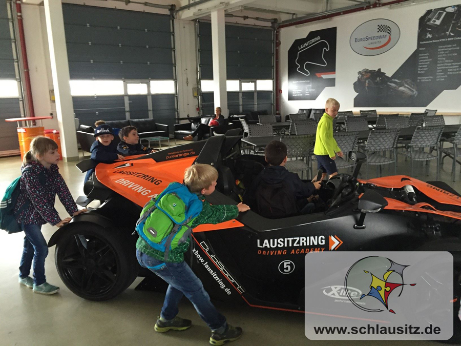 1Am Dienstag, den 02.08.2016  waren unsere Hortkinder auf dem Eurospeedway Lausitz. Dank einer sehr interessanten Führung der Mitarbeiter des Lausitzringes haben die Kinder viele Dinge erfahren und vor allem selbst ausprobieren können.