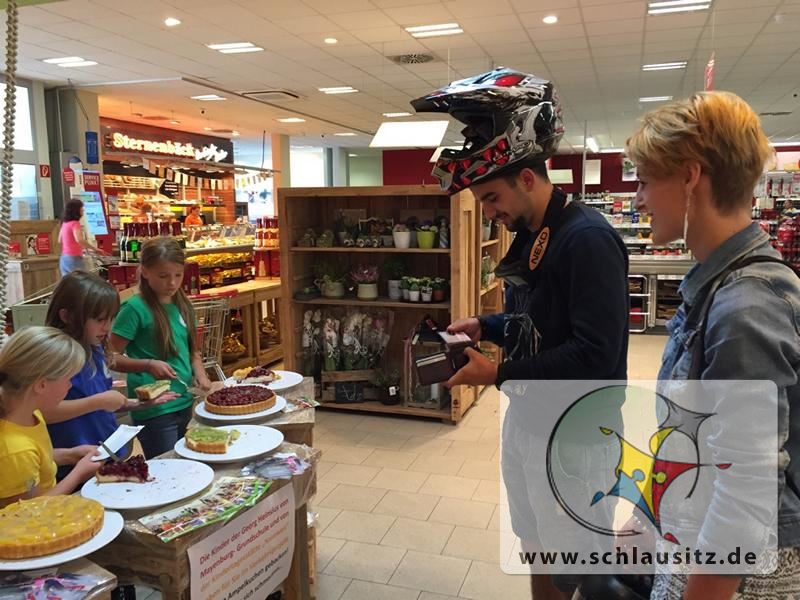 Die Kinder der AG Heinzelmännchen fertigten leckeren Kuchen in den Ampelfarben an. Dieser wurde dann am 21.09.16 an die Kunden des Rewe-Marktes in Senftenberg verkauft. Ein großes Dankeschön an Familie Radke (Inhaber des Rewe-Marktes) und die freundlichen Mitarbeiter für die Bereitstellung des Verkaufsstandes.