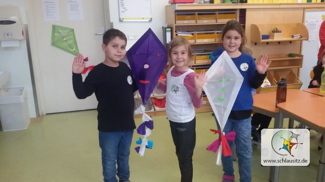 Drachen steigenMitte November war das Thema „Drache“ in der Neptun- und Saturnklasse groß geschrieben. Ganz eifrig bauten und gestalteten wir verschiedene Drachen, die wir als Deko für unseren Klassenraum nutzten. Auch ließen wir, wenn es das Wetter erlaubte unsere, von zu Hause mitgebrachten Drachen steigen. Alle Kinder waren mit Freude dabei und halfen sich gegenseitig, damit ihre Drachen fliegen konnten.