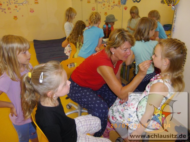 Auch für alle Schulkinder, die noch nicht in den Urlaub verreisen, gibt es viele tolle Ferienangebote bei uns. Jeden Tag ist ein besonderes „Highlight“ geplant, das gemeinsam mit den Kindern zusammengestellt wurde. So gab es schon eine Sommermodenschau mit Schminken, Stylen und richtigem Laufsteg, ein Piratenfest mit großer Schatzsuche und Wasserbombenschlacht und ein verrücktes Sportfest mit lustigen Stationen, u.a. Gummistiefelweitwurf. Natürlich gibt es für alle Ferienkinder auch viel Zeit zum Spielen, Lesen oder einfach nur „Chillen“.