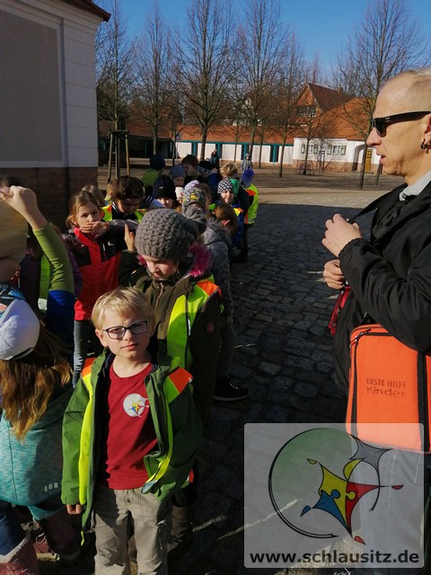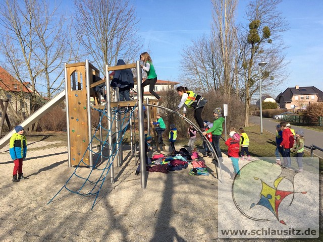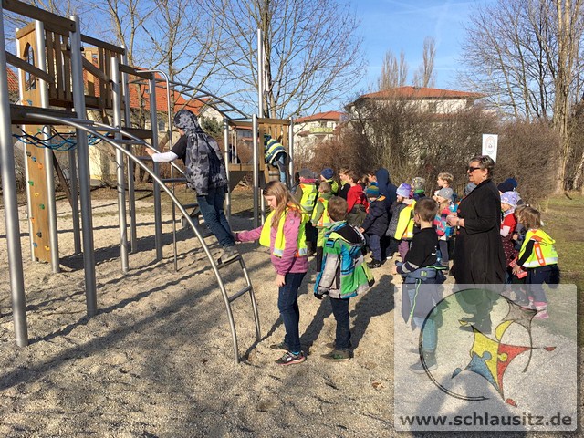 Mit 35 Kindern ging es am Montag bei tollem Wetter und guter Laune los. Um den pädagogischen Aspekt bei der Schatzsuche dabei nicht aus den Augen zu lassen, mussten Schritte gezählt, Verkehrszeichen erkannt und bestimmt und sich an Gebäuden orientiert werden. Das klappte super. Bevor der Schatz gehoben wurde, gab es noch einen kleinen sportlichen Parcours. Die Großen unterstützten die Kleinen und keiner fühlte sich ausgeschlossen.