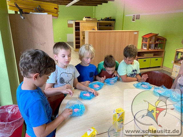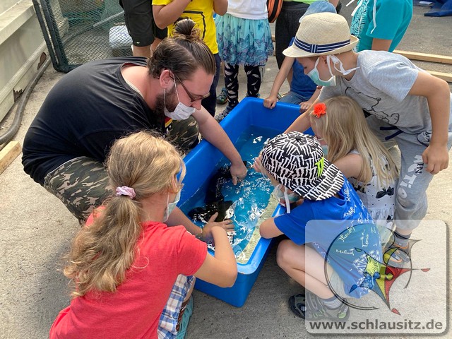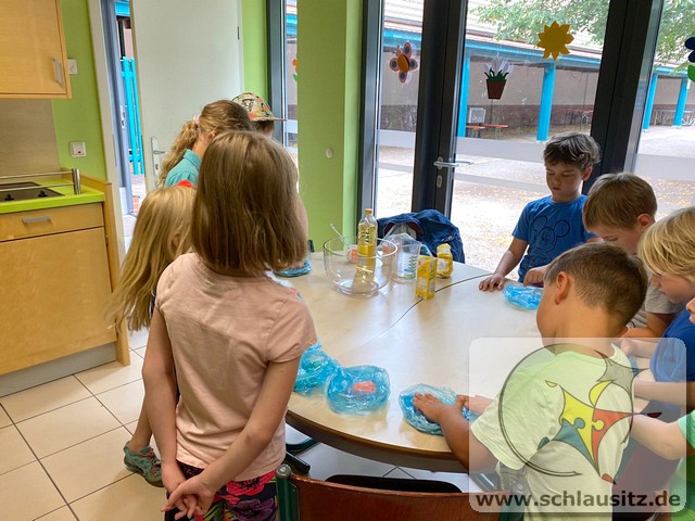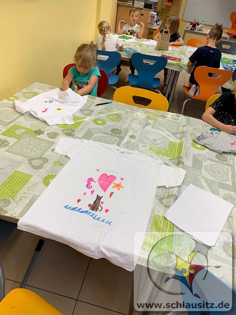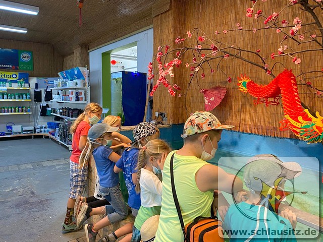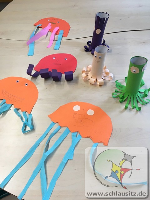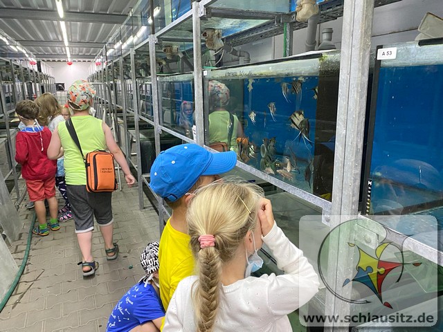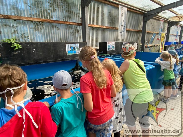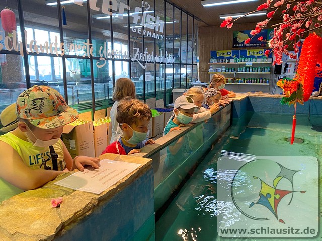 Am Montag stellten wir mit den Kindern aus Teig Knete her. Der Teig bestand aus Mehl, Salz, Öl und Wasser. Mit Back-und Speisefarbe färbten wir den Teig blau und rot ein. Das hat den Kindern großen Spaß bereitet. Wir besuchten am Dienstag Interfish. Dort konnten wir einiges über Fische und vor allem Koi´s erfahren. Fische und Meerestiere wurden am Mittwoch aus Salzteig geformt, woran die Kinder sehr viel Freude hatten. Donnerstag brachte jedes Kind sein eigenes T-Shirt mit, was individuell mit eigenen Motiven gestaltet wurde. Die Kinder bemalten am Freitag ihre aus Salzteig geformten Fische und Meerestiere.